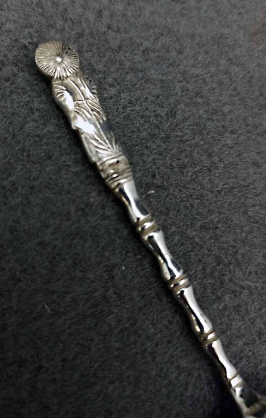 6x Espressolöffel mit asiatischer Figur am Griff. Silber 900 er. L. 10 cm,  Gew. 76 g. Sehr guter Zustand.