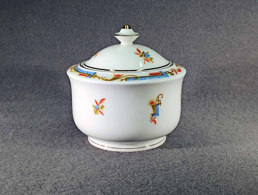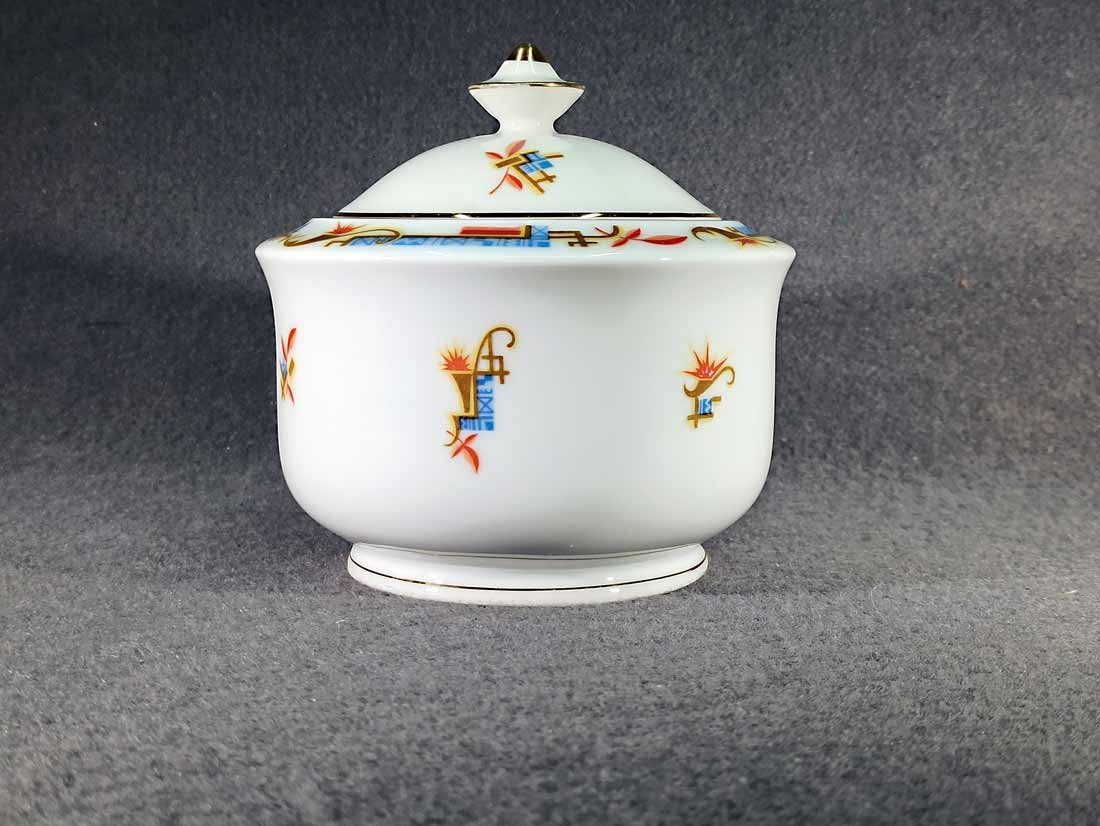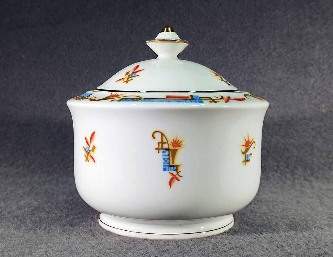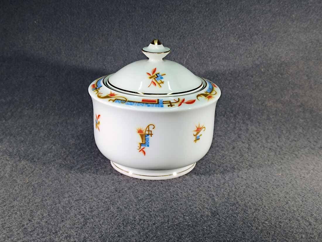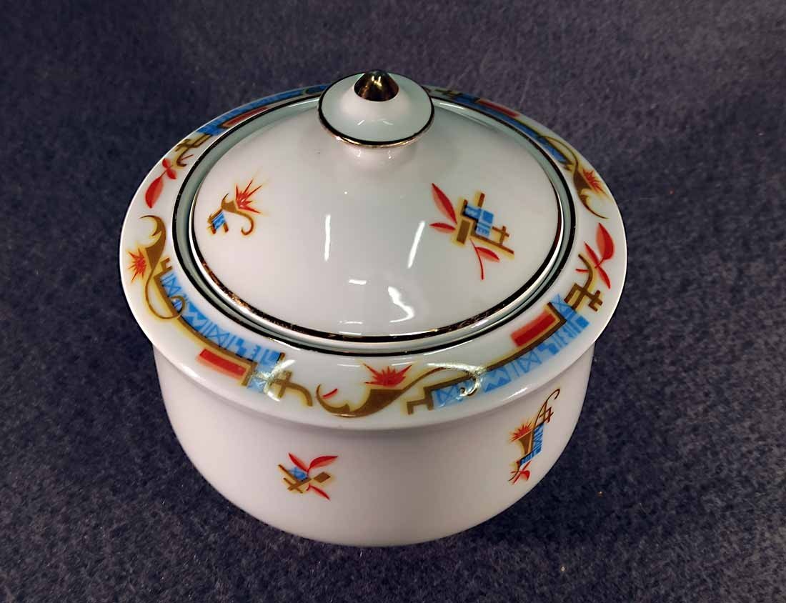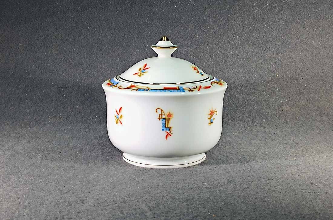 Bonboniere, Deckeldose Art Deco um 1920. Interessanter Dekor und Form. H. ca 11,5 cm, D. ca 12 cm. Gemarkt KPM unter Krone. Sehr guter Zustand ohne Beschädigungen.