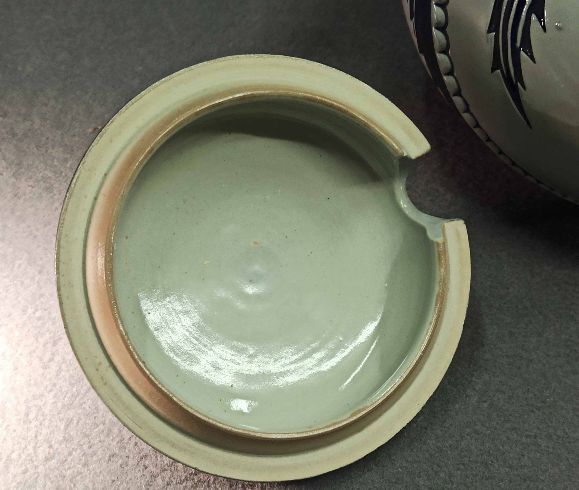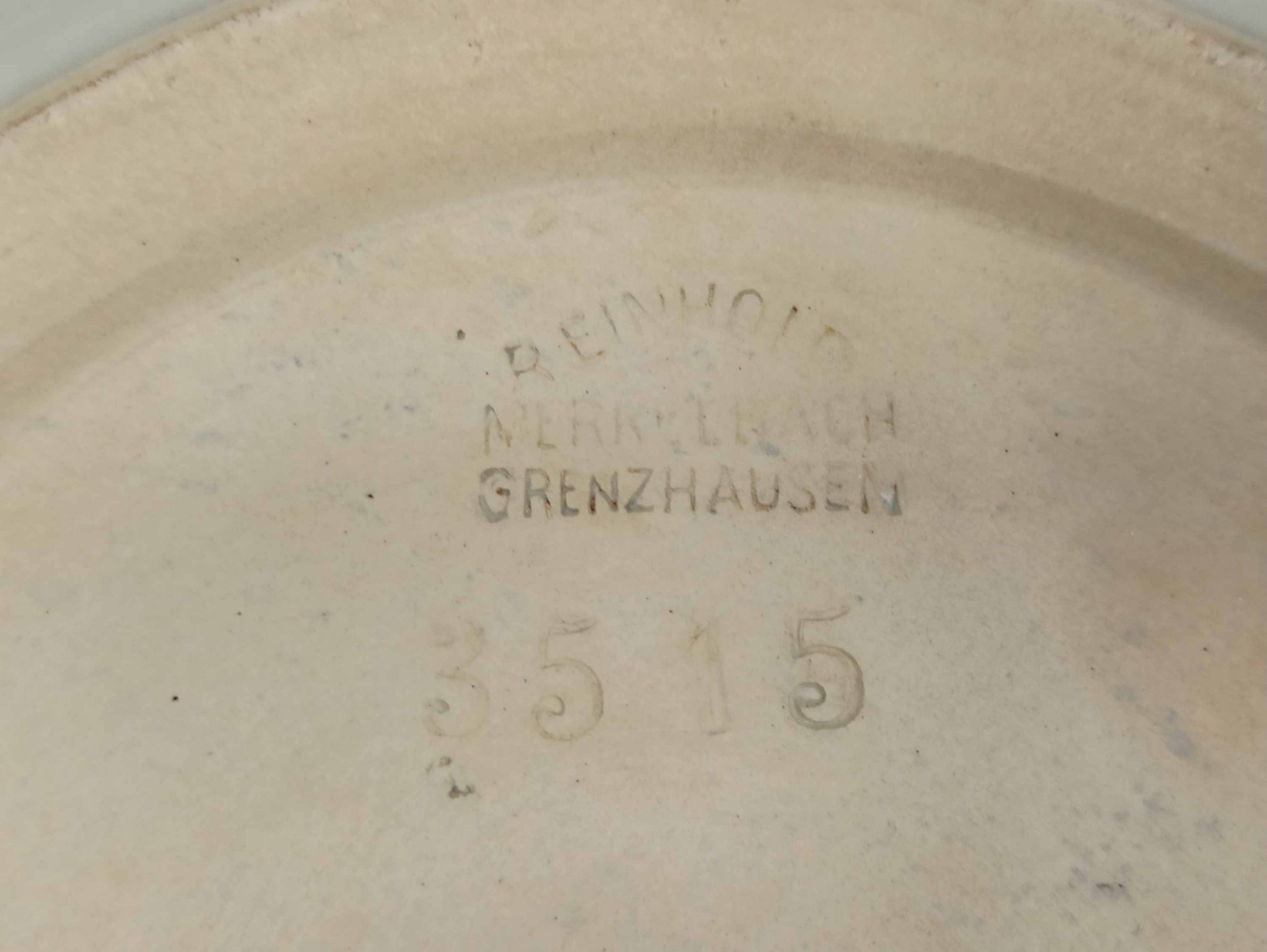 Unter dem Boden versch. Pressmarken; Manufakturmarke: "Reinhold Merkelbach Grenzhausen", Mod.Nr. "3515" sowie "HH". H. 28 cm. Sehr guter Zustand keine Beschädigungen.