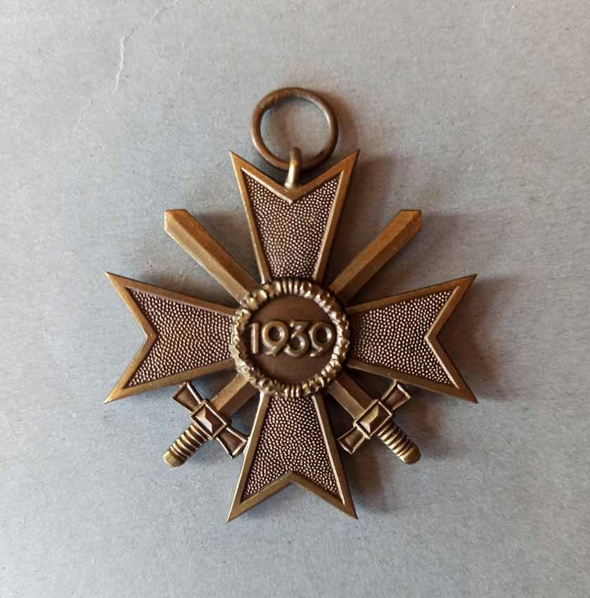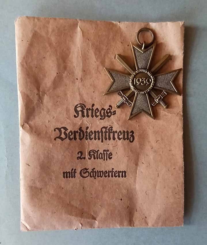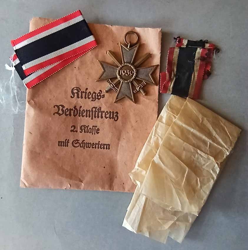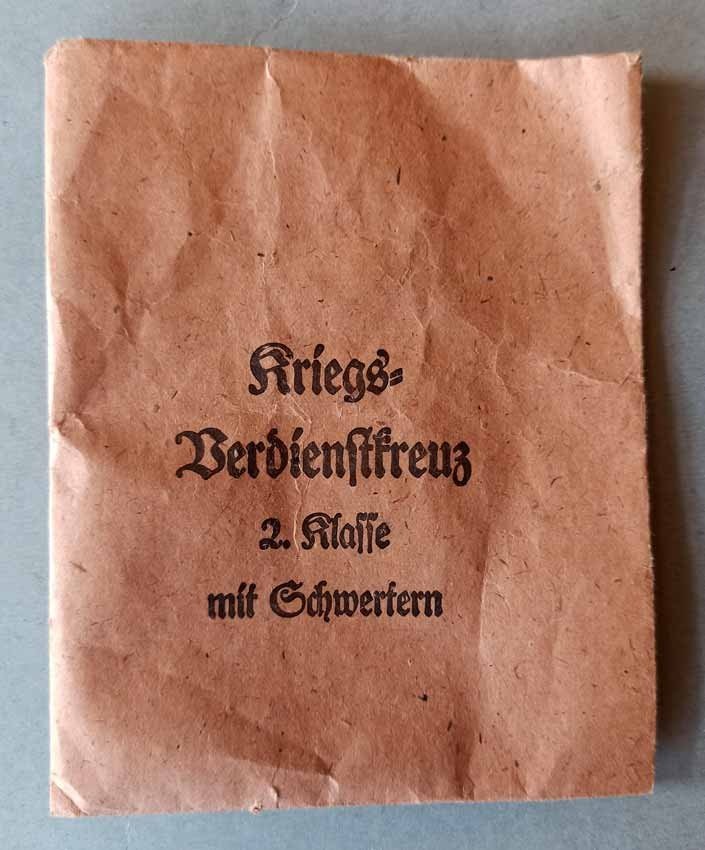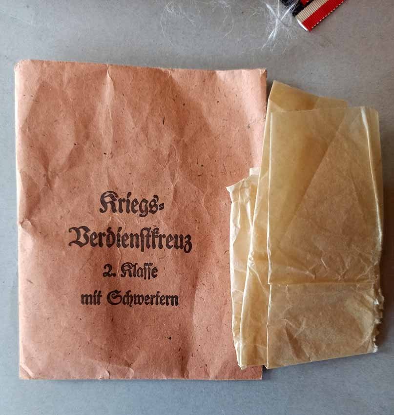 Kriegsverdienstkreuz 2. Klasse, 1939 mit Schwertern incl. orig. Verleihungstüte, 2 Bänder, und Papier.  Steinhauer & Lück, Lüdenscheid.