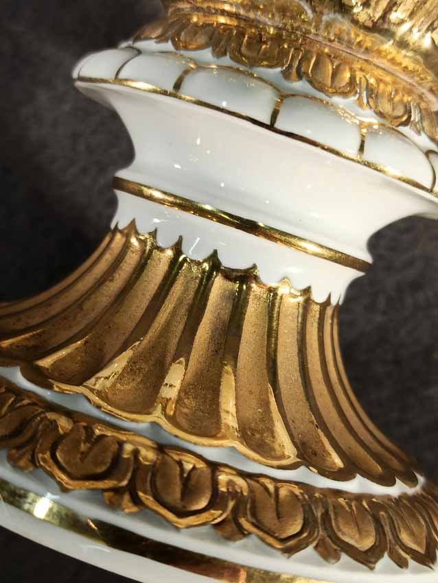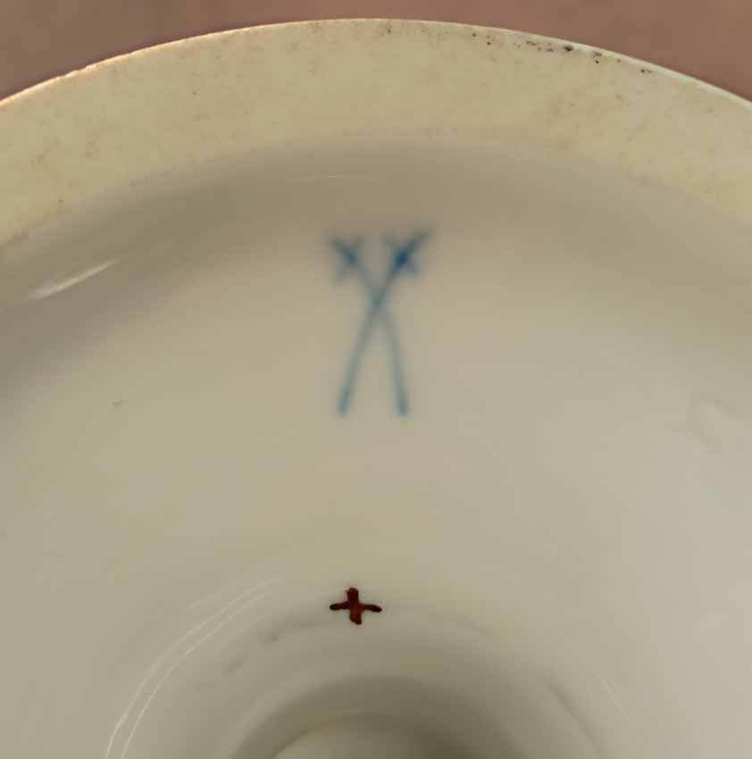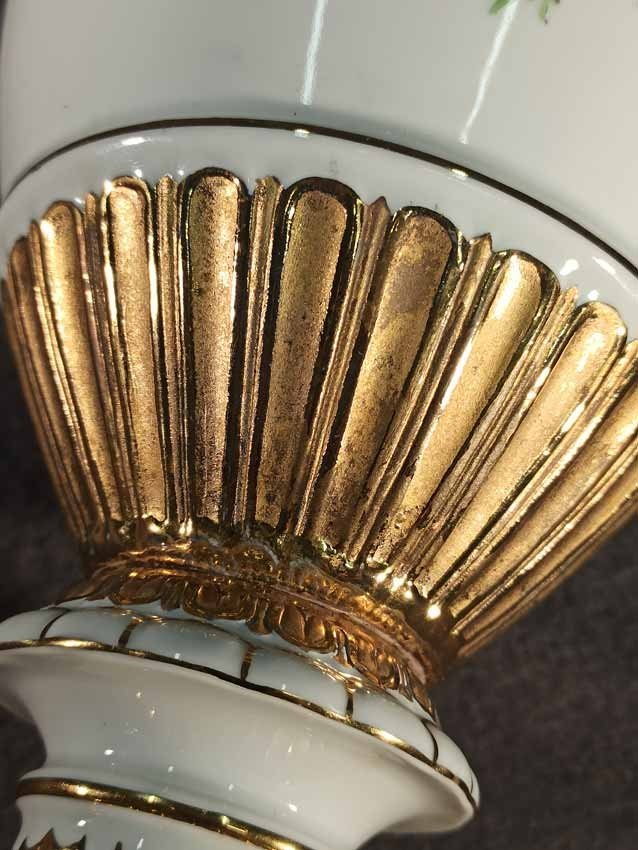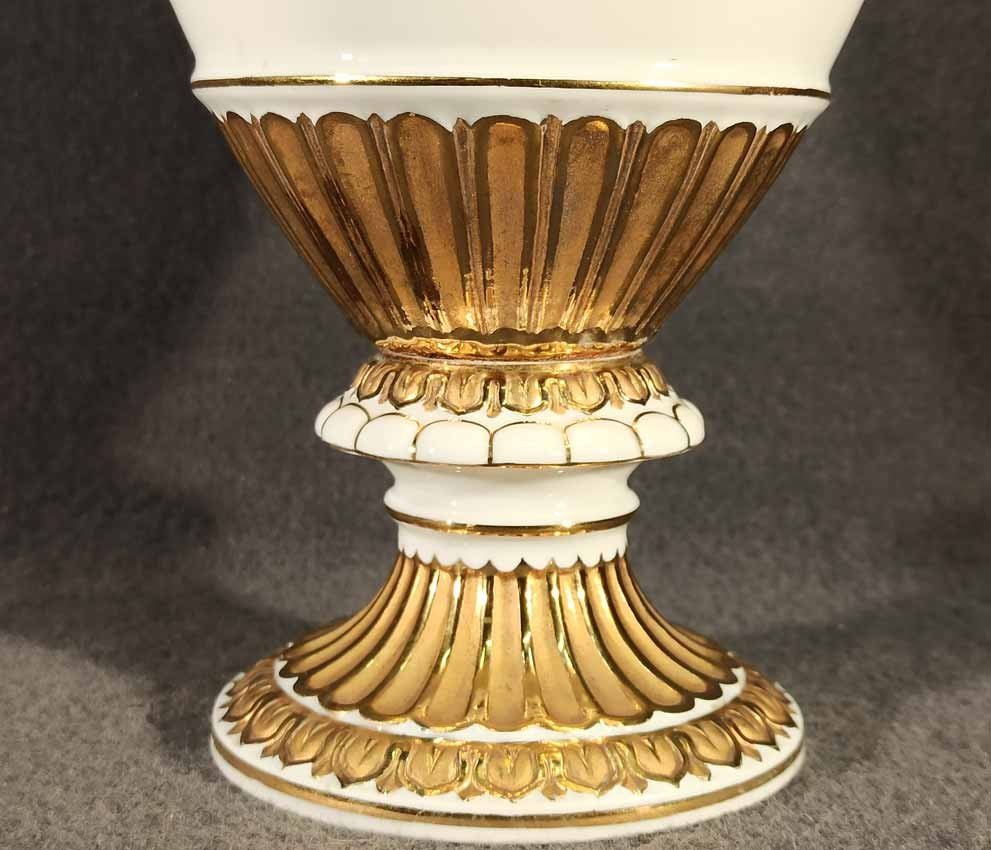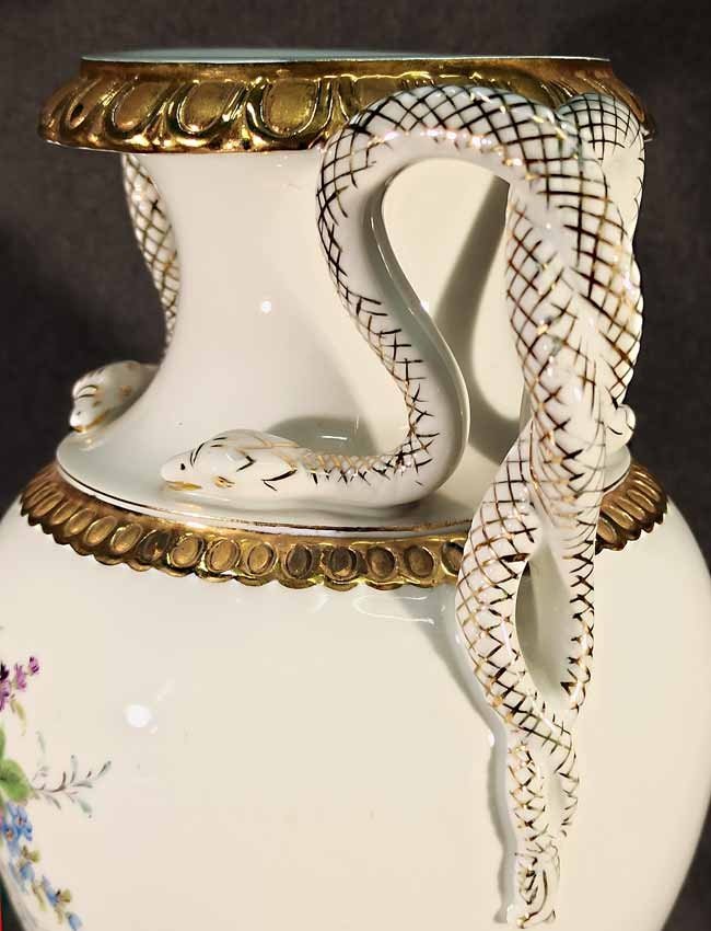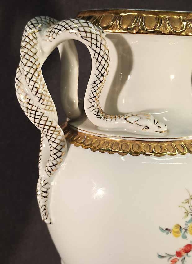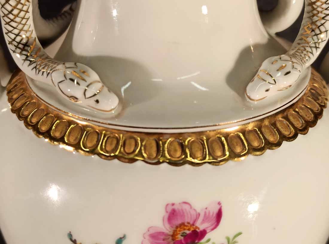 Meissen, Schlangenhenkelvase mit Blumenmalerei und Gold, 1. Wahl