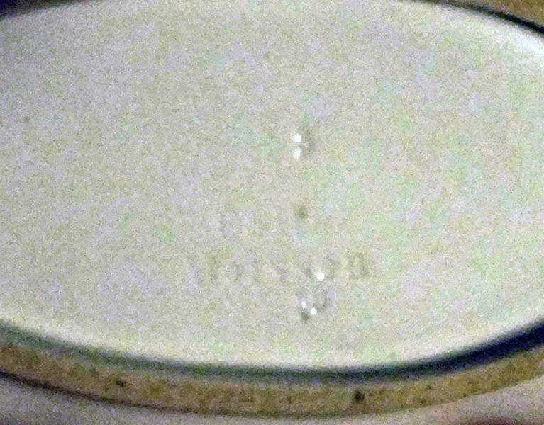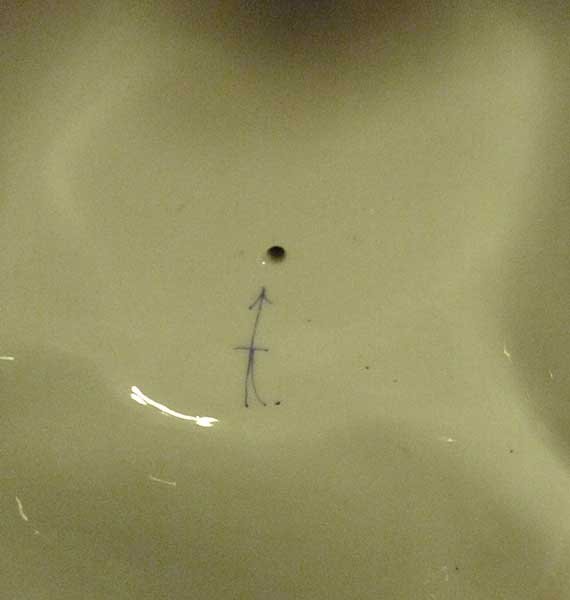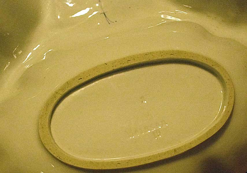 Gemarkt mit seltener Pfeilmarke in Unterglasurblau und geprägt „Cölln Meissen“ unterglasur.