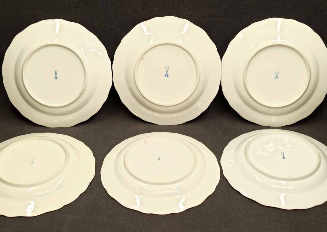 Meissen, 6x große Teller, Koralle Rot mit grauem Faden, D. 25,5 cm