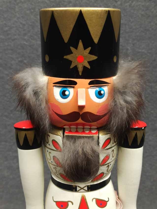 Verkauft! Nussknacker, Erzgebirge, Seiffen. expertic, Erzgebirgische Volkskunst. Älterer Nussknacker, sehr gut erhalten mit OVP (diese mit Lagerspuren). Unter dem Fuß originales Manufaktur Etikett von expertic.  H. 32 cm.