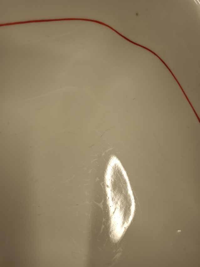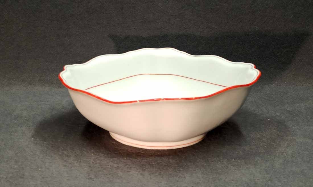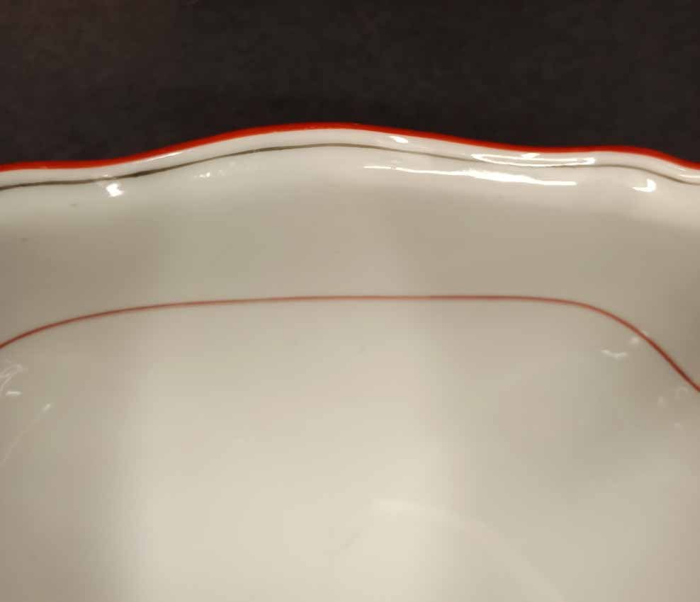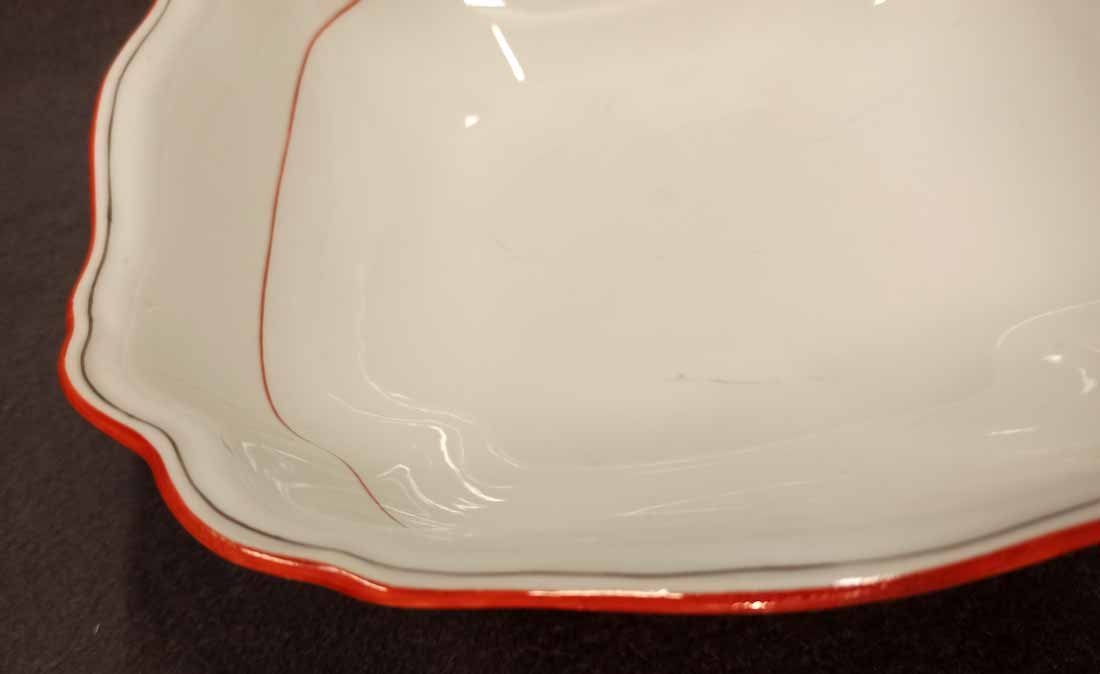 Meissen große Schüssel, Koralle Rot mit grauem Faden