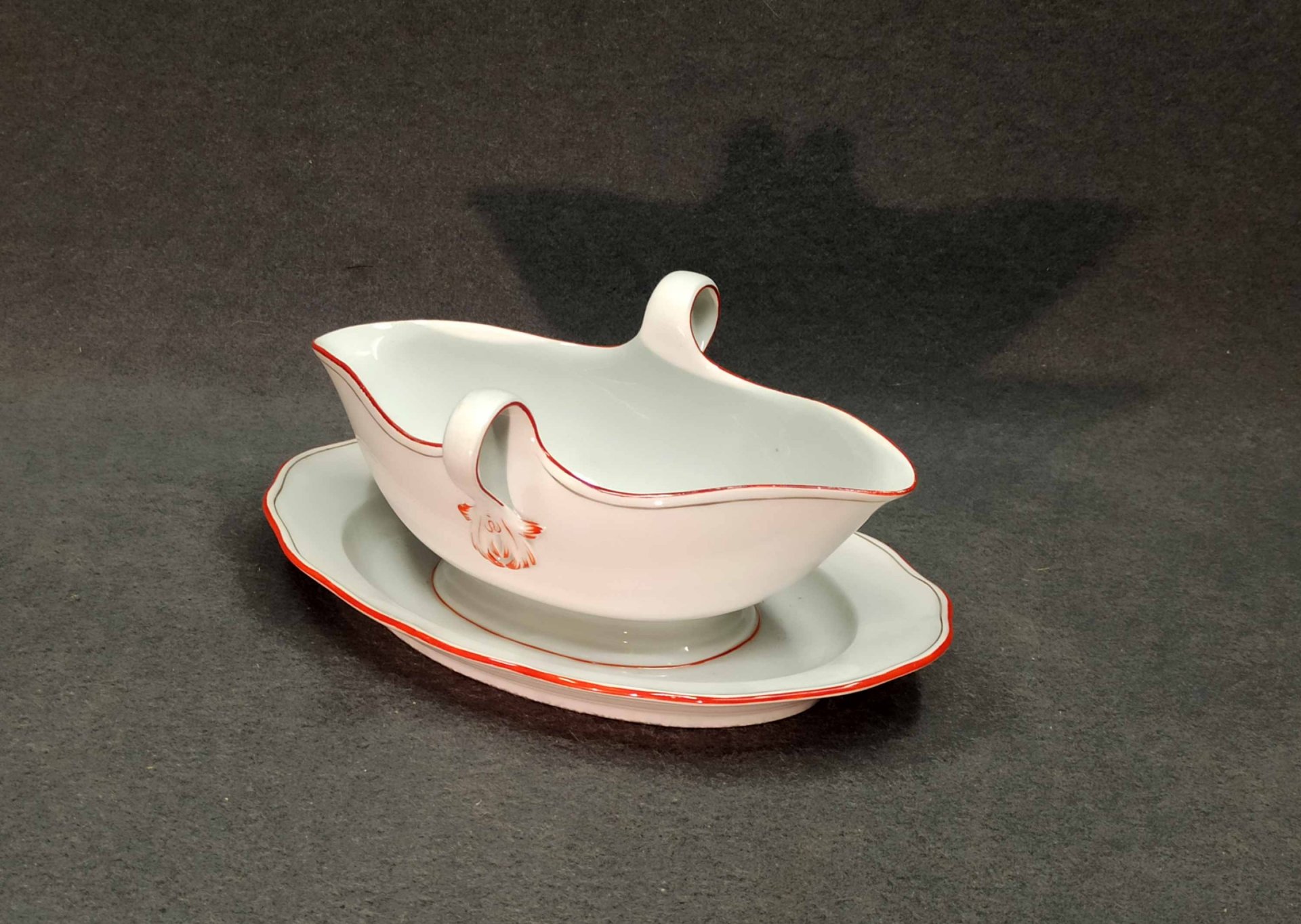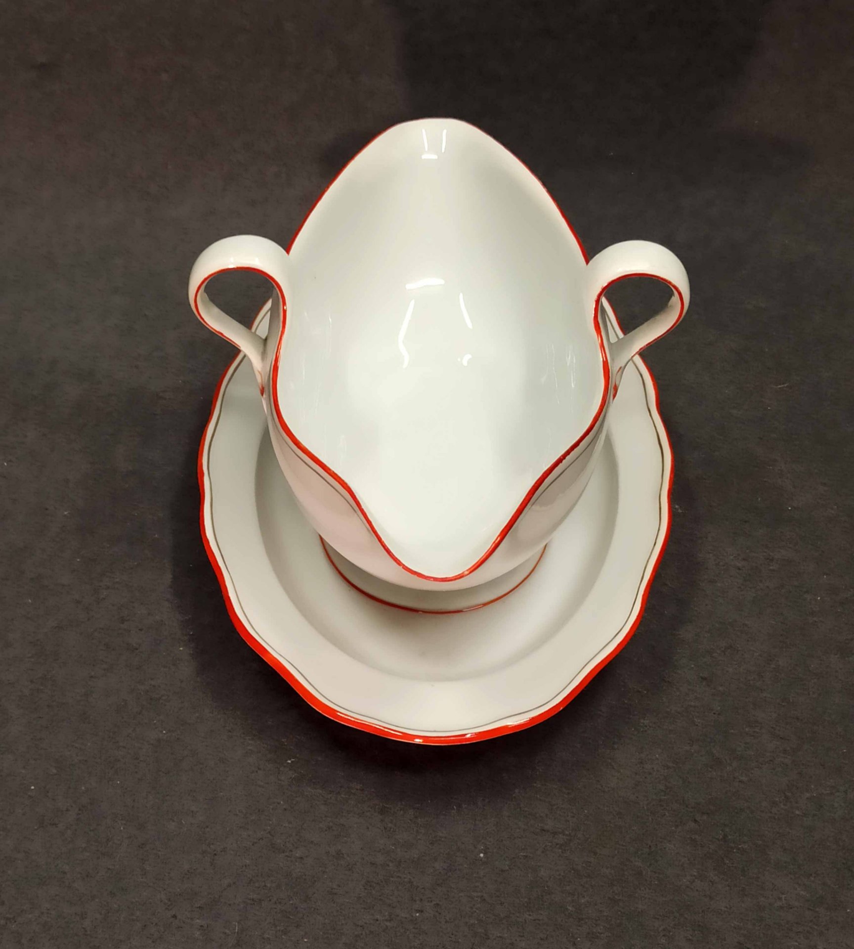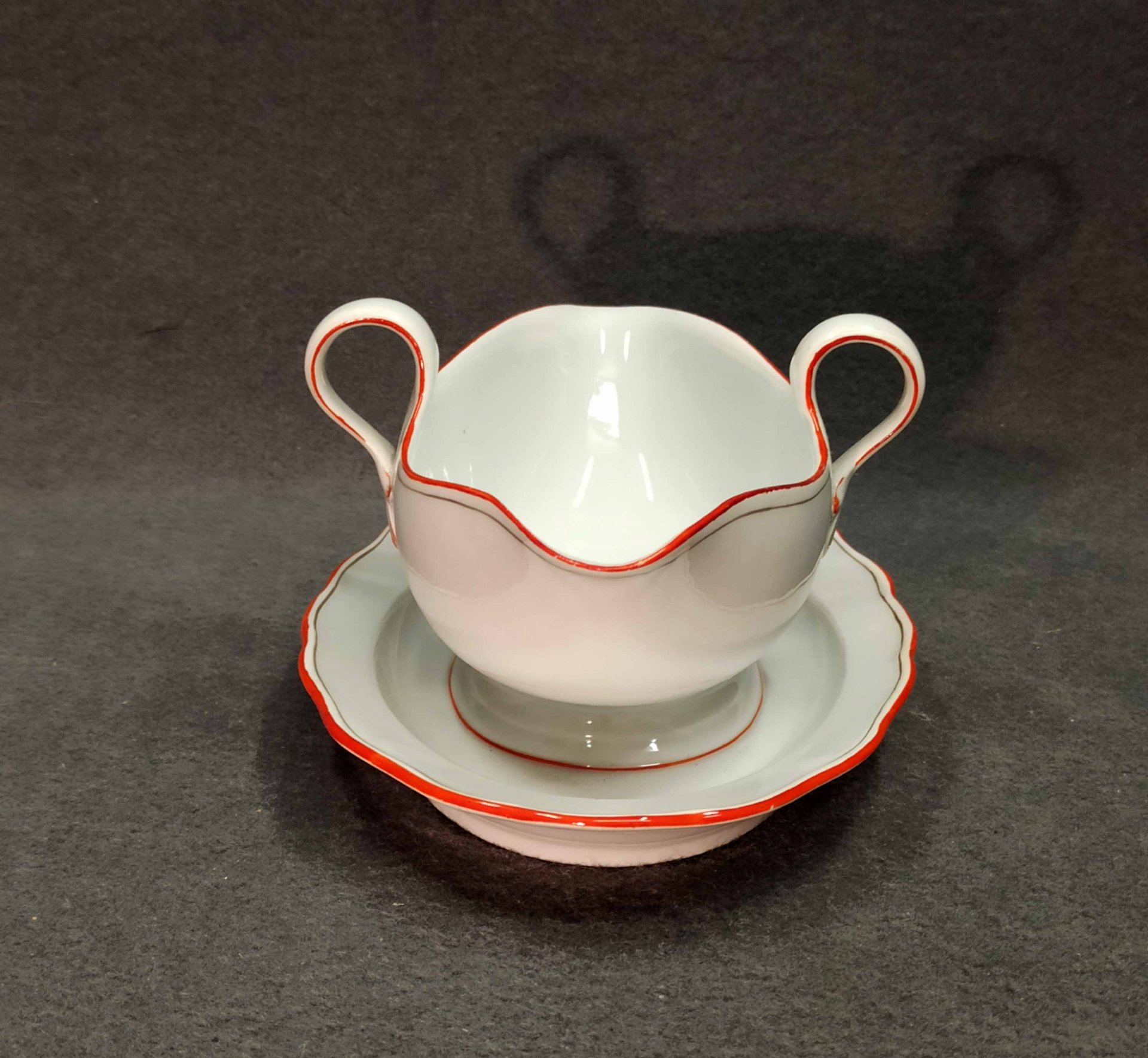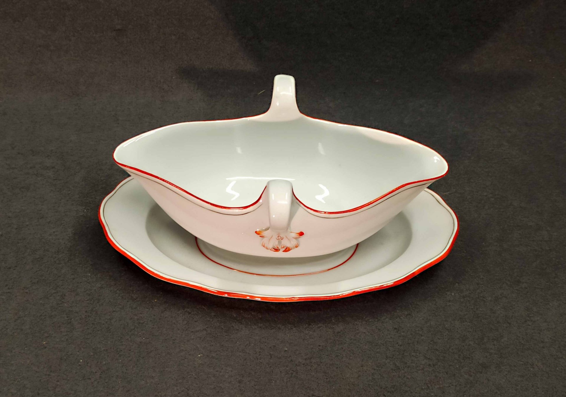 Meissen, Sauciere, Koralle Rot mit Faden grau