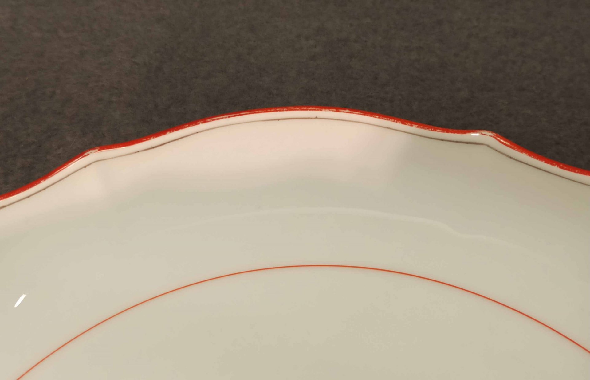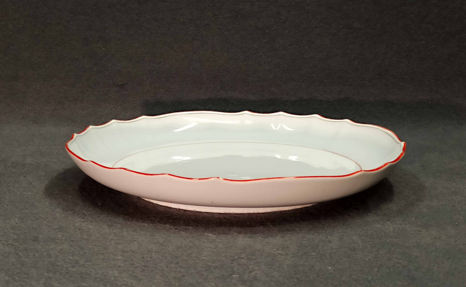Meissen, gr. Schale, Koralle Rot mit grauem Faden (1)