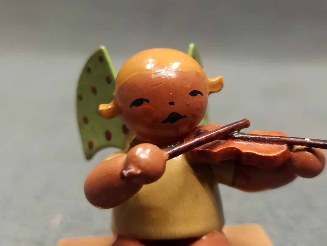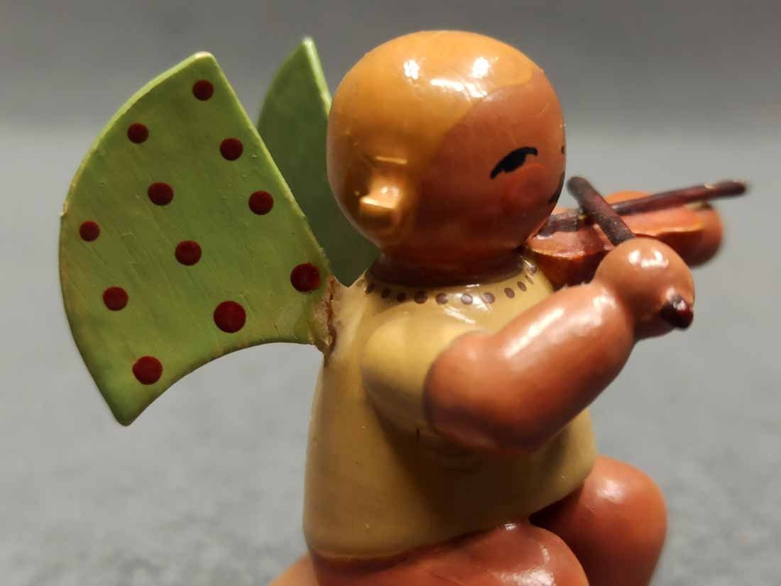 Verkauft! Alter Wendt und Kühn Engel, dunkel, Flügel mit braunen Punkten