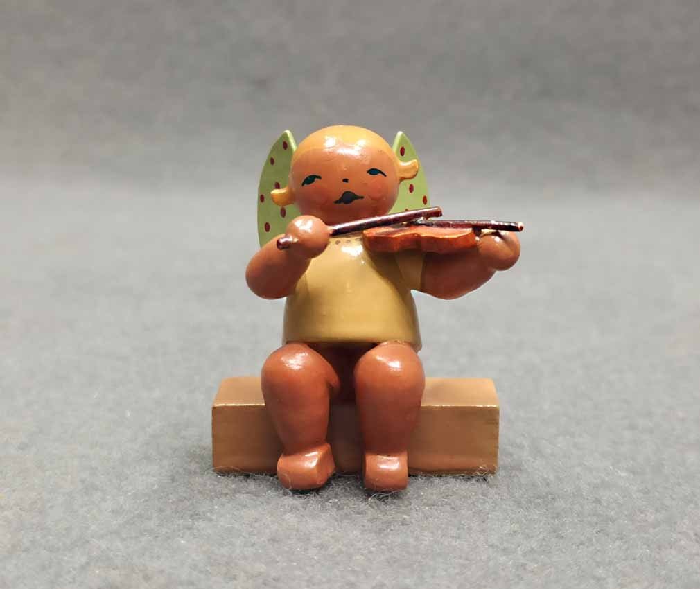 Verkauft! Wendt und Kühn, Engel mit Blasinstrument. Dunkler Engel, die Flügel mit braunen Punkten. Der Engel selber mit braunem "Teint".