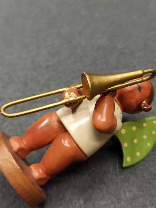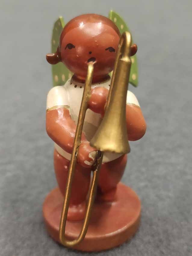 Verkauft! Wendt und Kühn, Engel mit Blasinstrument. Dunkler Engel, mit braunem "Teint".