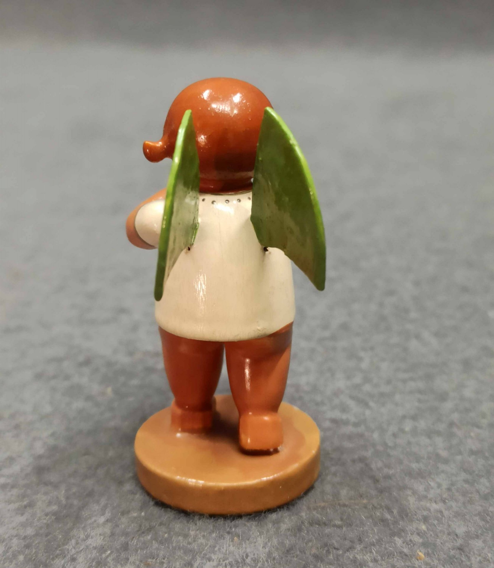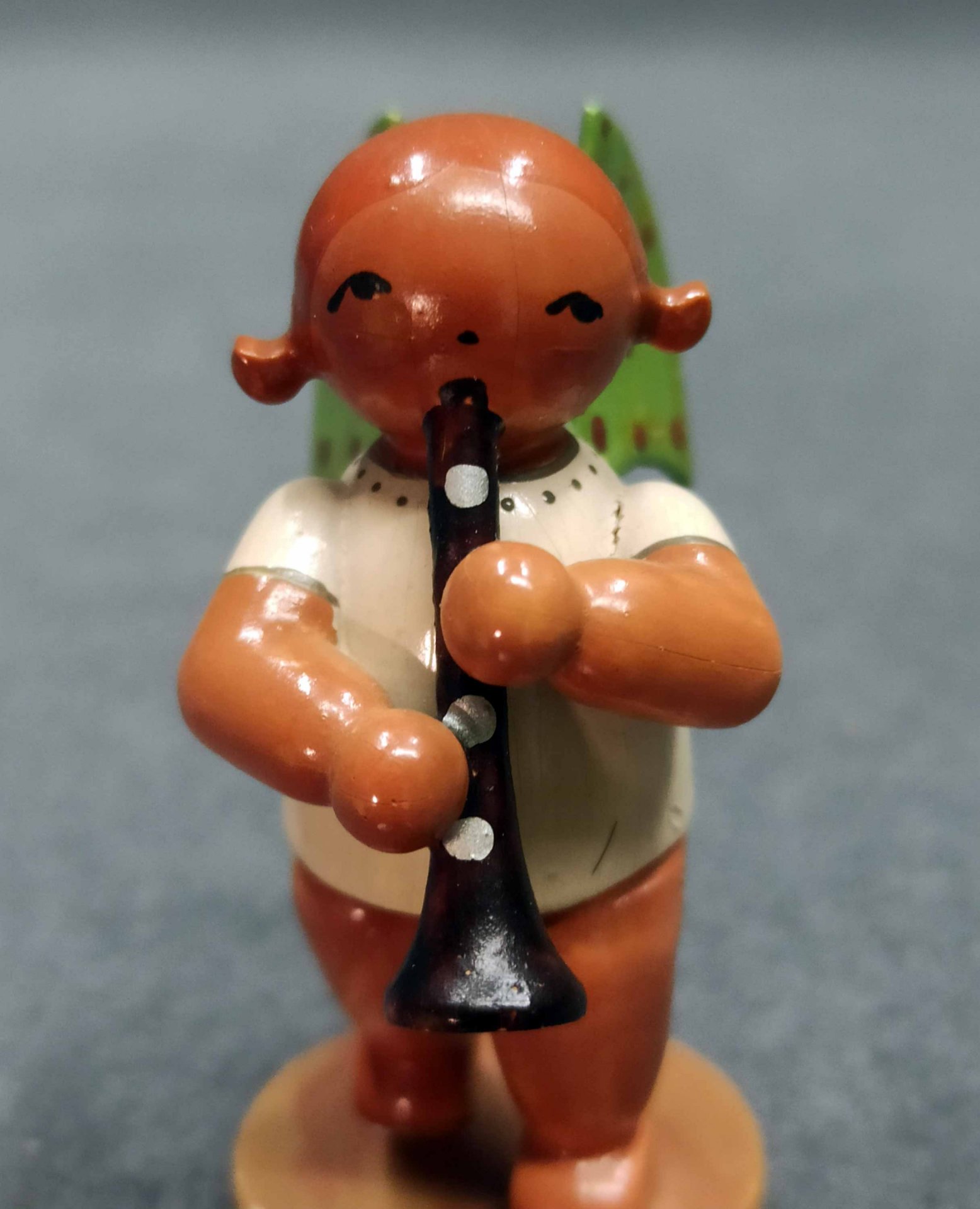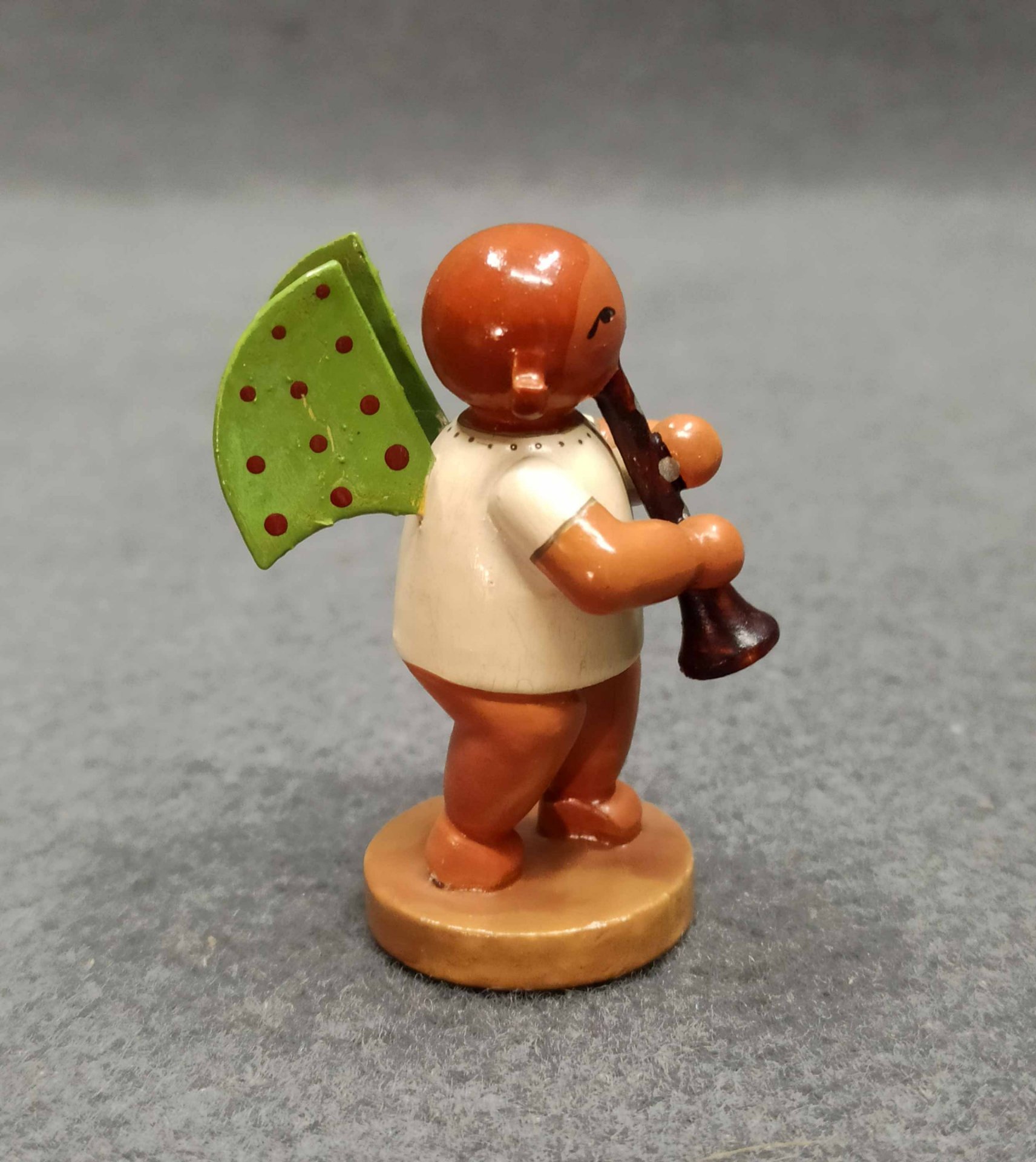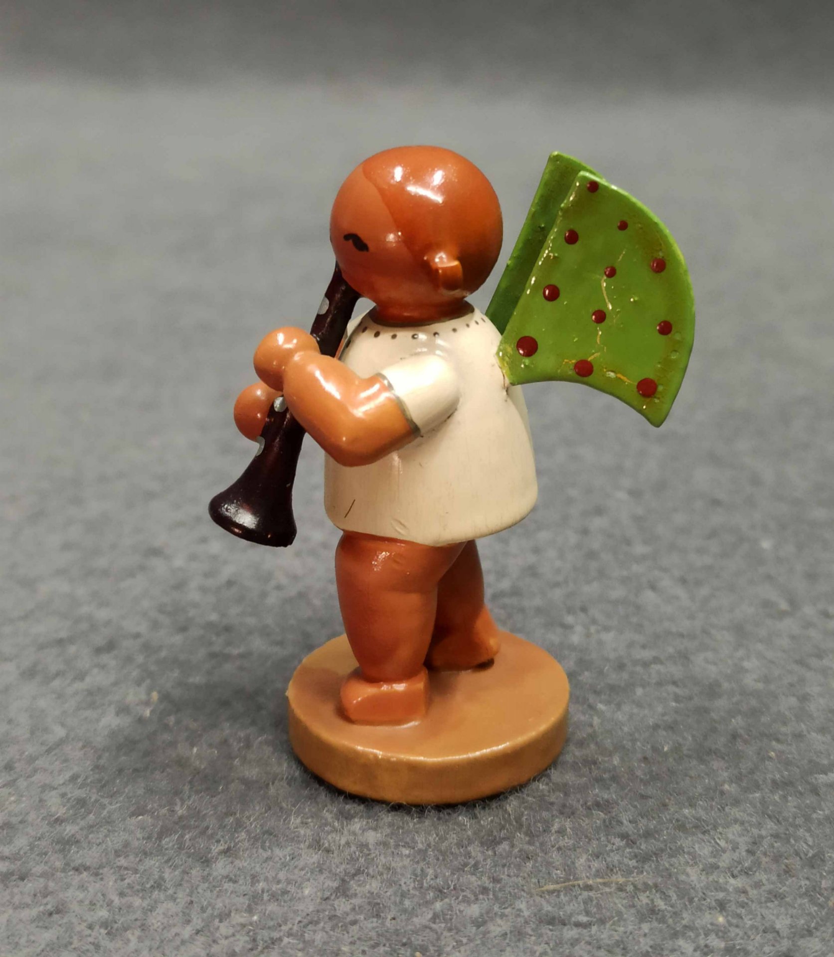 Verkauft! Wendt und Kühn, Engel mit Blasinstrument. Dunkler Engel, die Flügel mit braunen Punkten. Der Engel selber mit braunem "Teint".