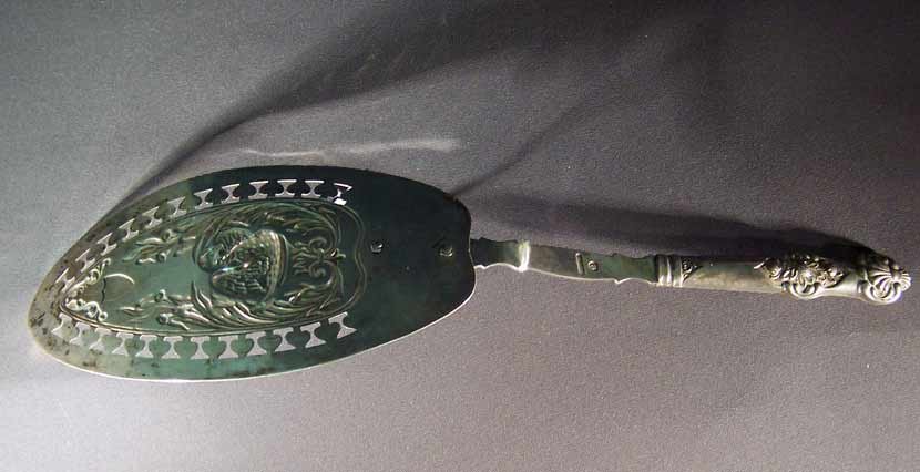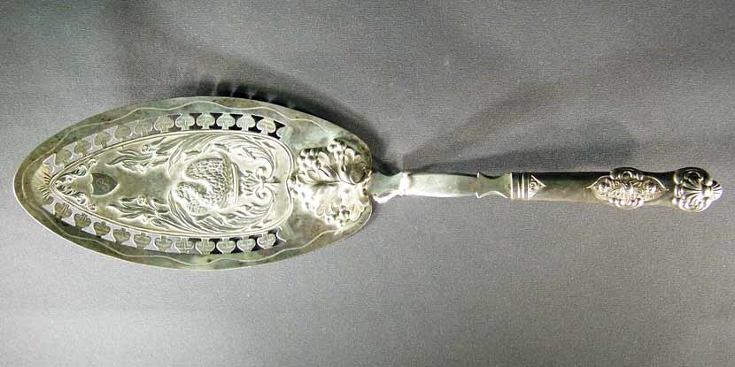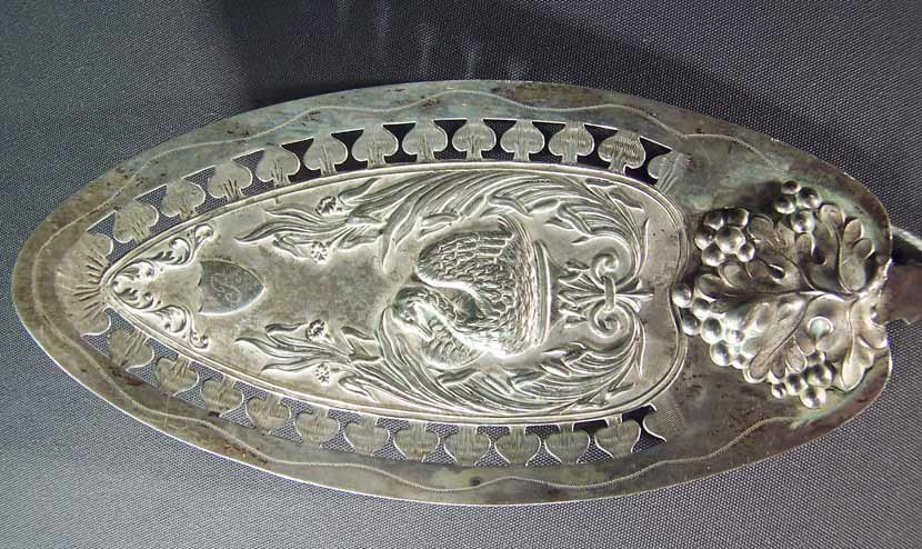 Pastetenheber, 19.Jh. Silber, detailreich getriebene Darstellung eines Schwanes umrankt von Schilf.