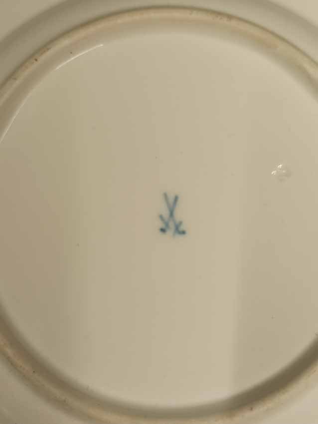 Meissen, 6x alte Teller um 1880. Blaue Deutsche Blume mit Insektenmalerei. 1. Wahl. ohne Beschädigungen. Dessertteller D. ca 16 cm. Sehr gut erhalten ohne Beschädigungen, keine Gebrauchsspuren. Schwertermarke der Manufaktur Meissen mit Knauf an den Schwertgriffen um 1860-1900. Schwertermarke ohne Schleifstriche 1. Wahl.