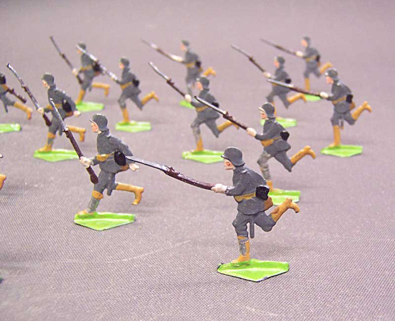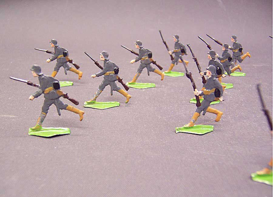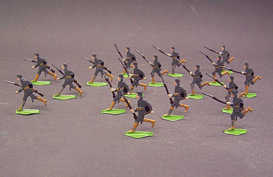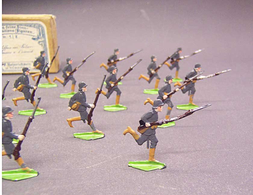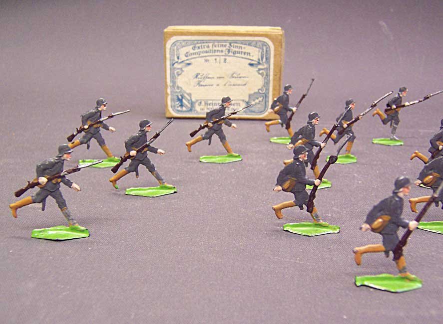 Heinrichsen 17 Zinnsoldaten orig. Schachtel. Infanterie im Sturm mit aufgepflanztem, Bajonet.