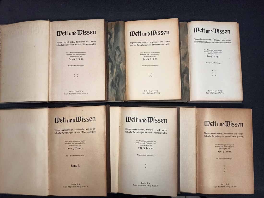 Welt und Wissen. Bände 1 bis 6. Neuer Allgemeiner Verlag, Berlin. Allgemeinverständliche, belehrende und unterhaltende Darstellung aus allen Wissensgebieten.
