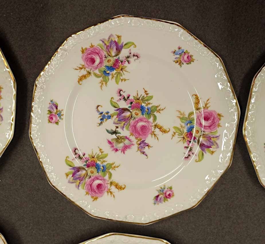 Reserviert! 6x Rosenthal Maria mit reicher Blumenmalerei+Gold, Teller 20 cm