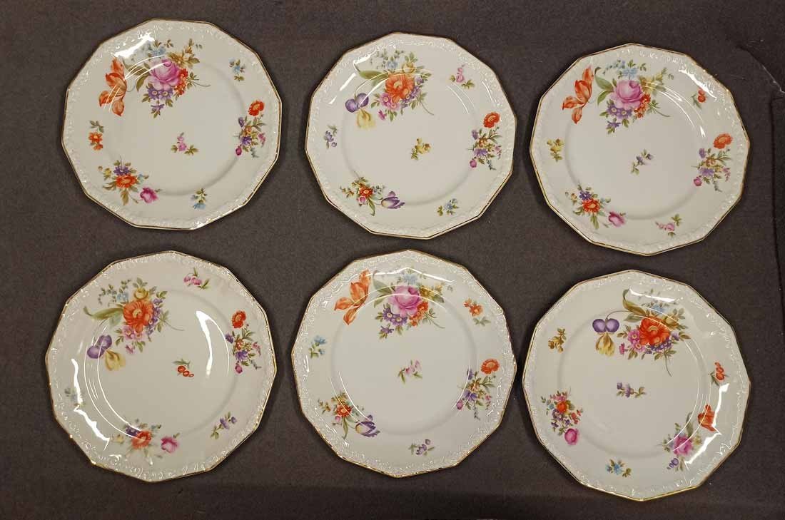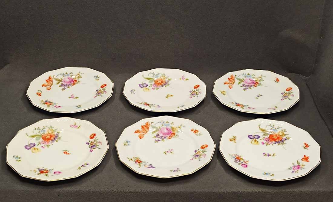 Rosenthal, 6x Speiseteller Maria mit schöner Blumenmalerei und Goldrand. Sehr schöne Teller in sehr gutem Zustand, ohne Beschädigungen. Flache Speise Teller D. 24,5 cm. Manufaktur Marke von Rosenthal auf der Unterseite.