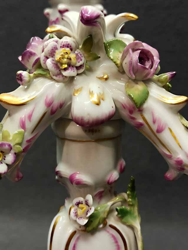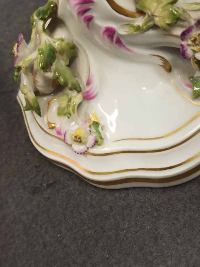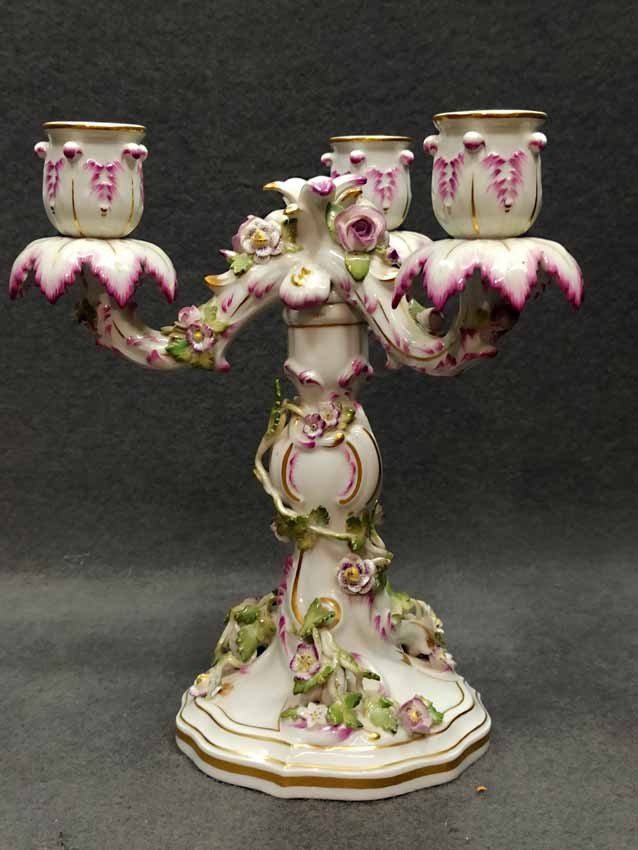 Meissen, Kerzenleuchter mit Blütenbesatz, 3 flammig