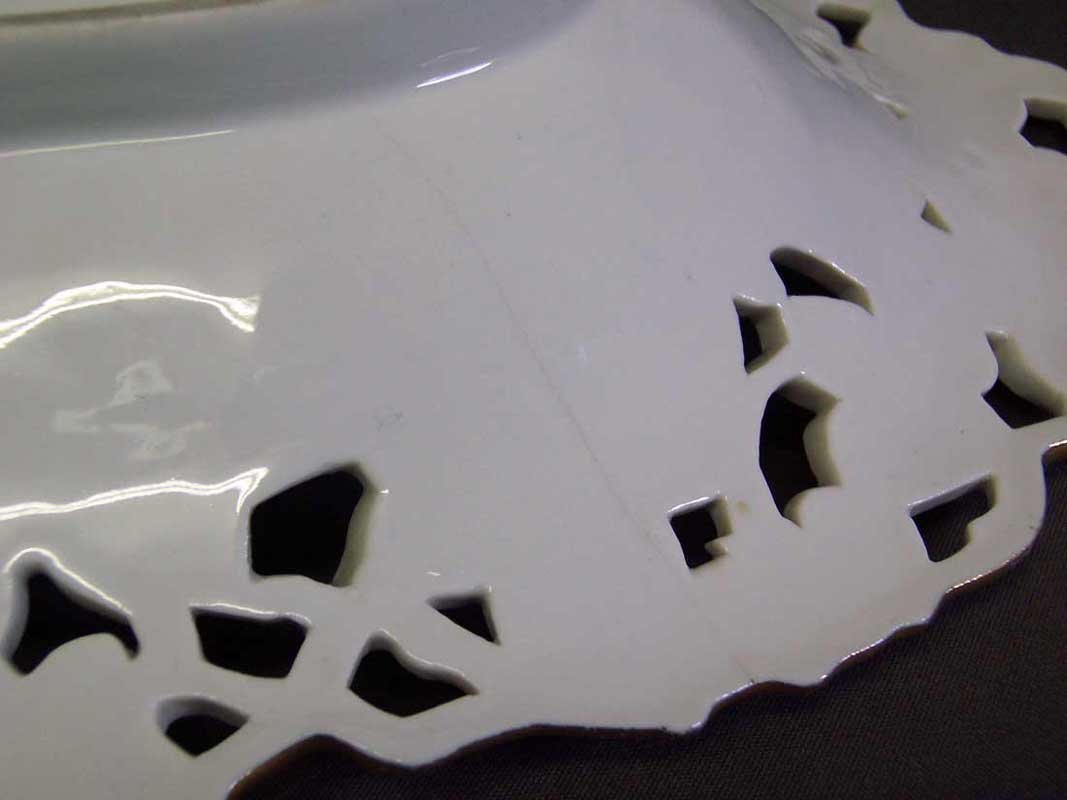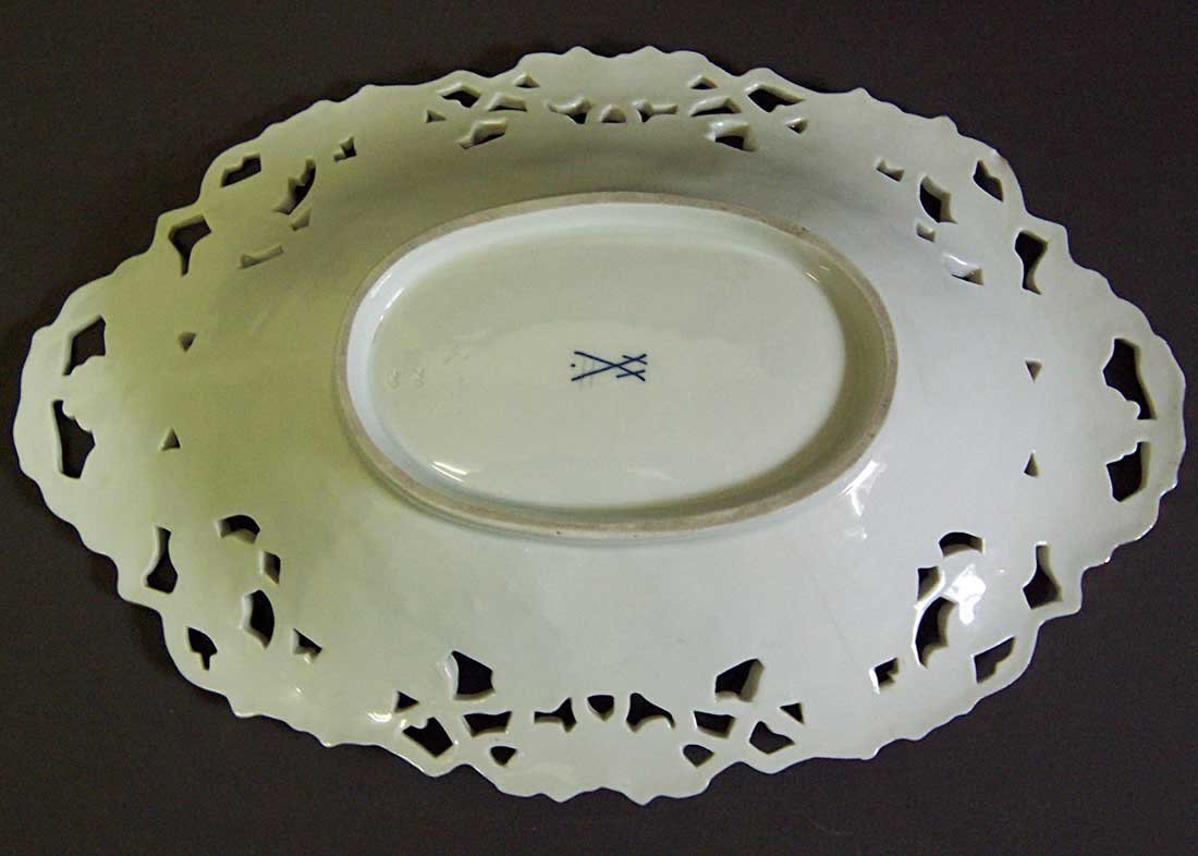 Blaue Schwertermarke, 2 Schleifstriche. Im Rand, unauffälliger Haarriss.