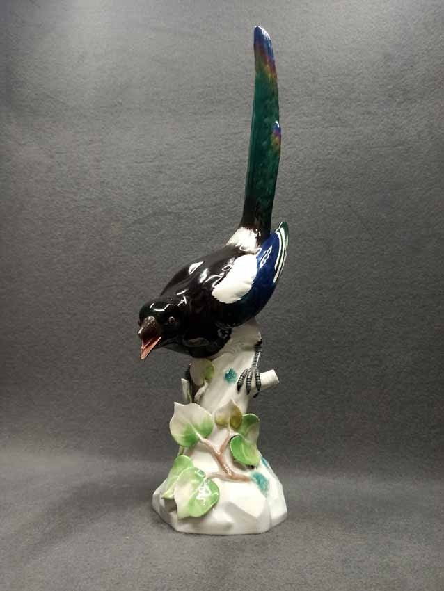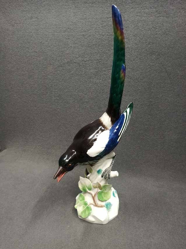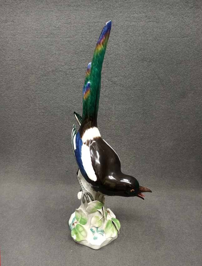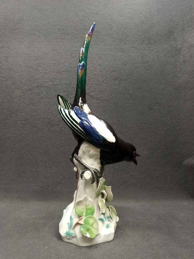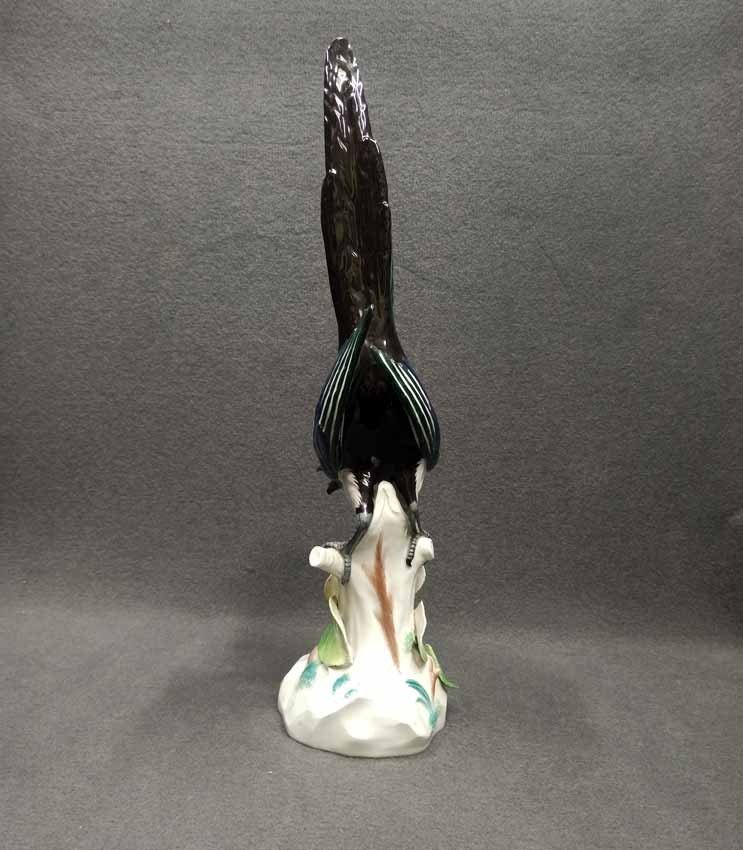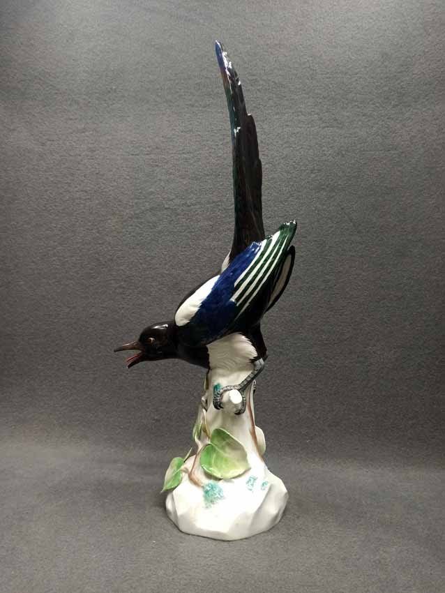Reserviert! Meissen, gr. Figur Elster, Knaufzeit um 1900, H. 52,5 cm, 1. Wahl mit kl. Def.