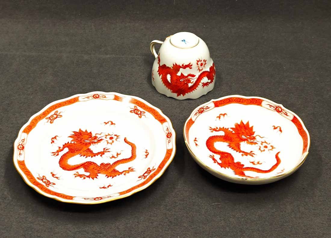 Reserviert! Meissen, Kaffeegedeck Roter Drache, 3-tlg