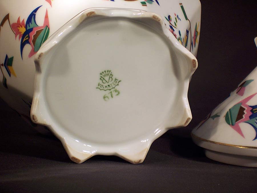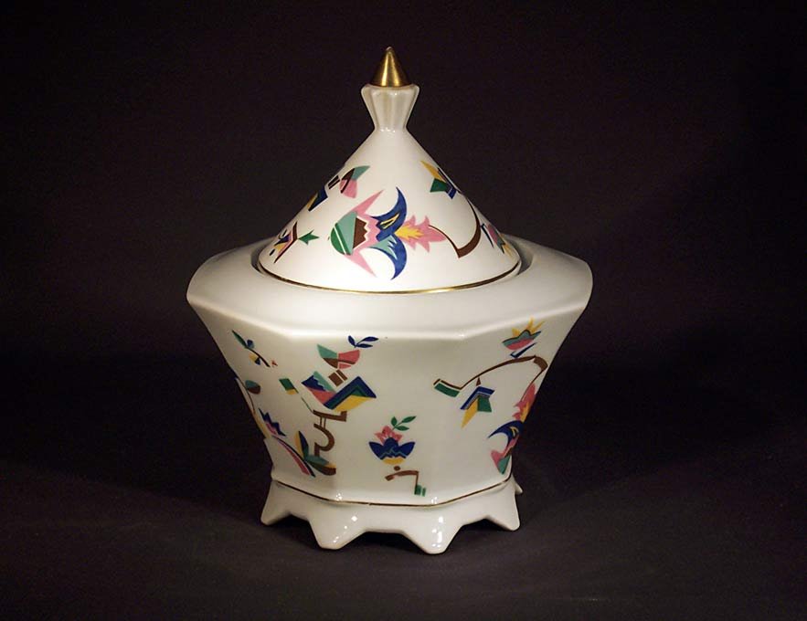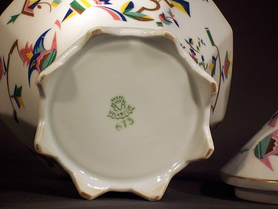 Art Deco Deckeldose. Volkstedt Bayer und Bock um 1920.