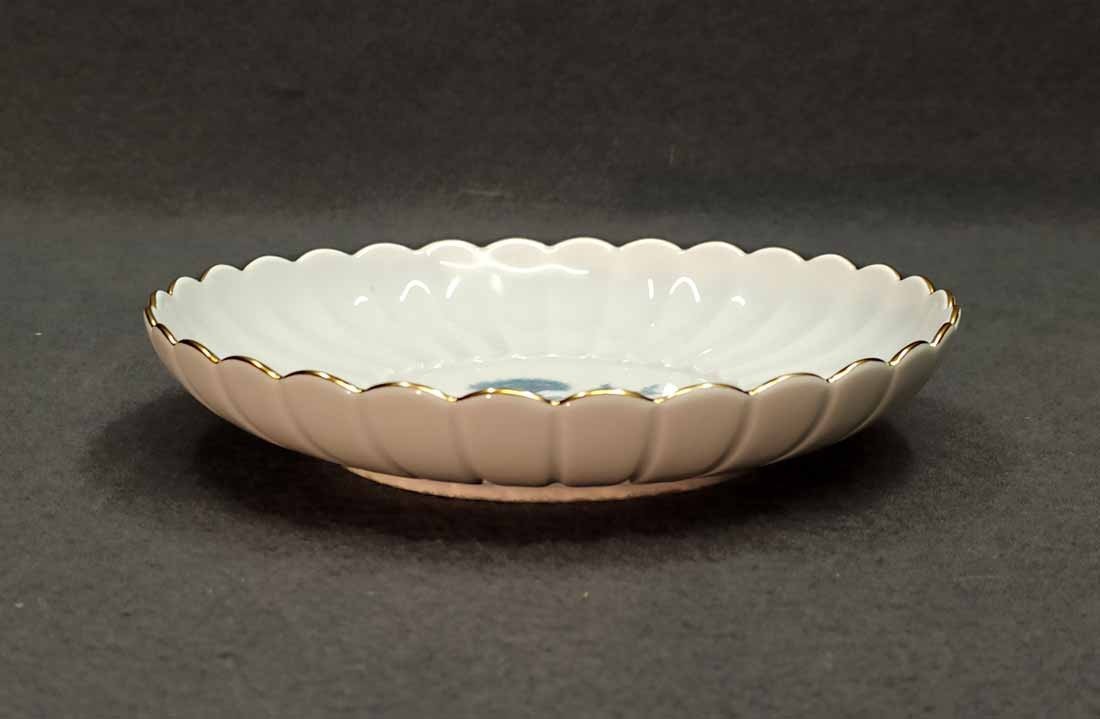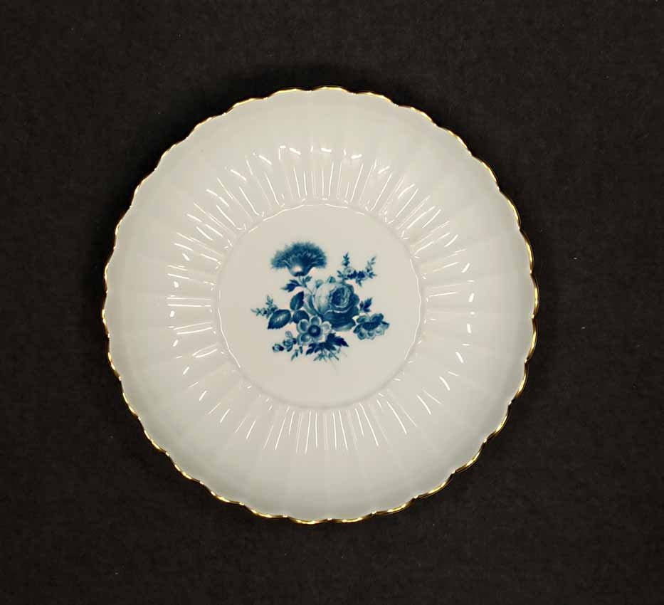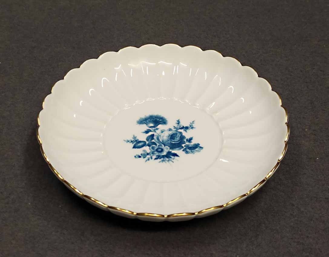 Reserviert! Meissen, kl. Fächerschale, Blaue Blume und Goldrand, 1. Wahl
