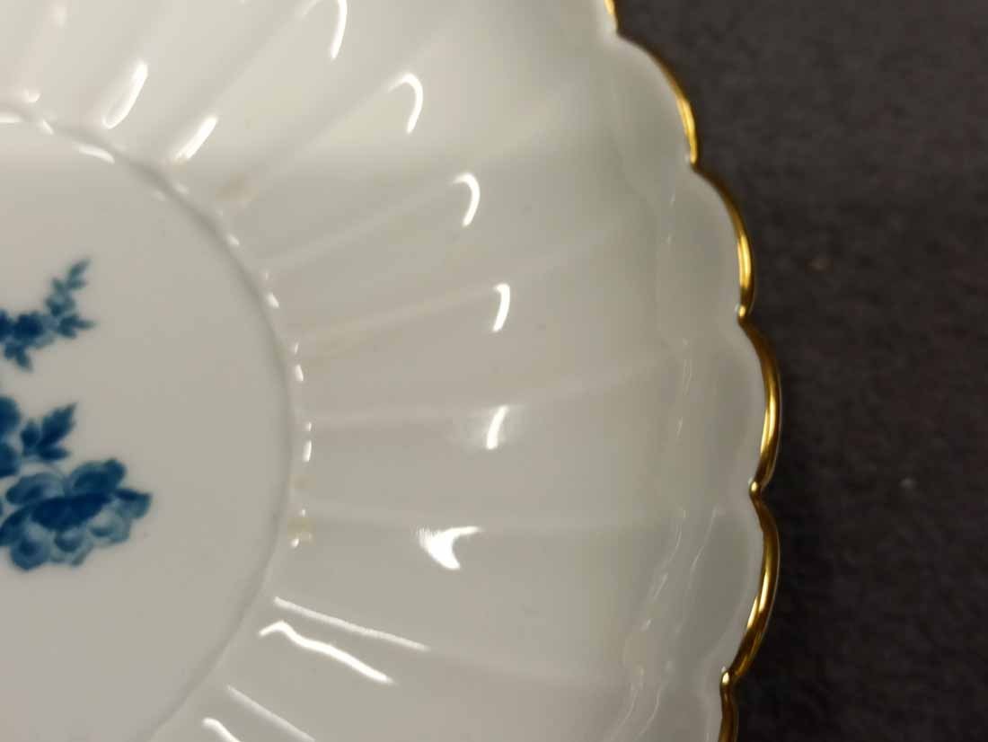 Reserviert! Meissen, kleine Fächerschale, Blaue Blume und Goldrand, Aquatinta. 1. Wahl. D. 16,5 cm. Sehr guter Zustand, neuw. Schwertermarke ohne Schleifstriche, 1. Wahl.
