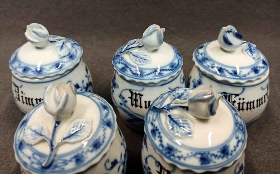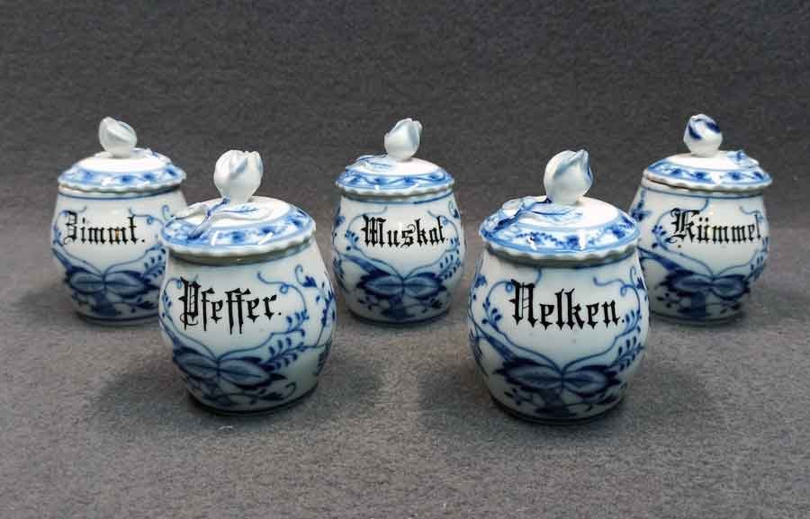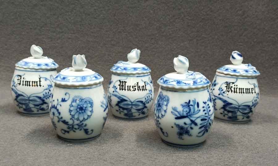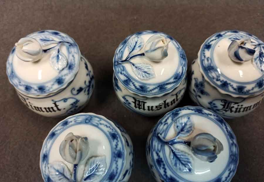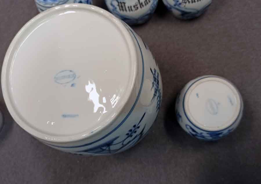 Teichert Meißen, Zwiebelmuster, 11x Vorratsdosen f. Gewürze u.Lebensmittel