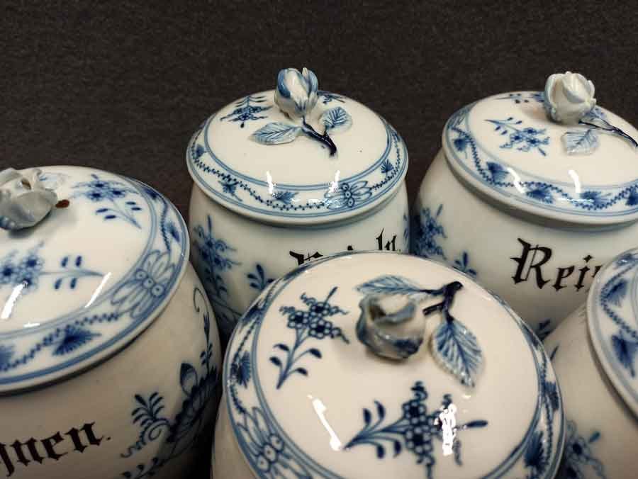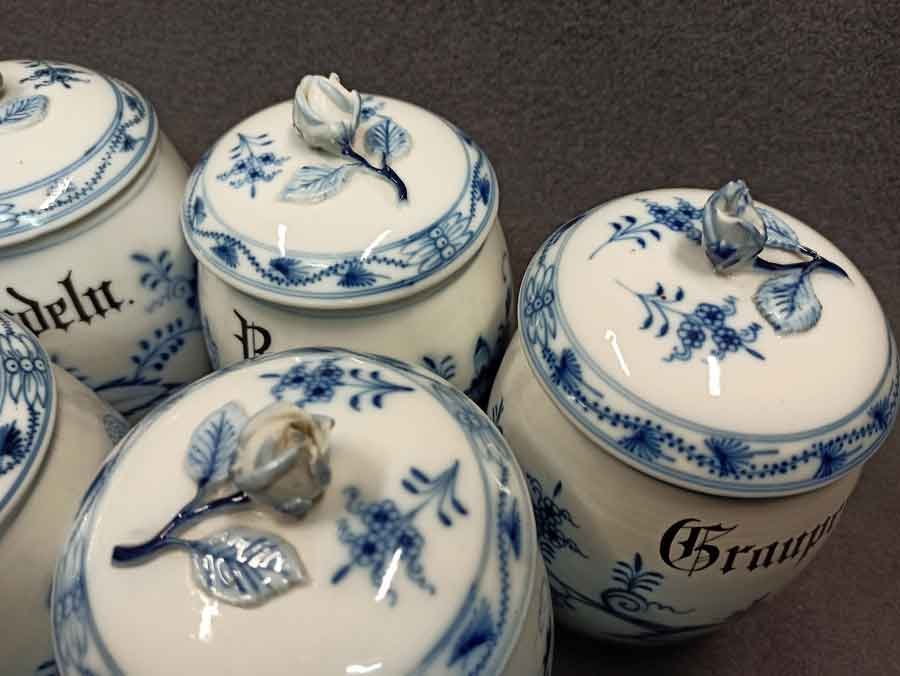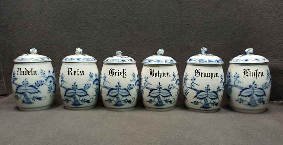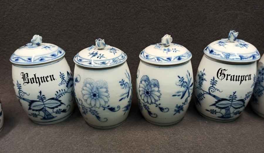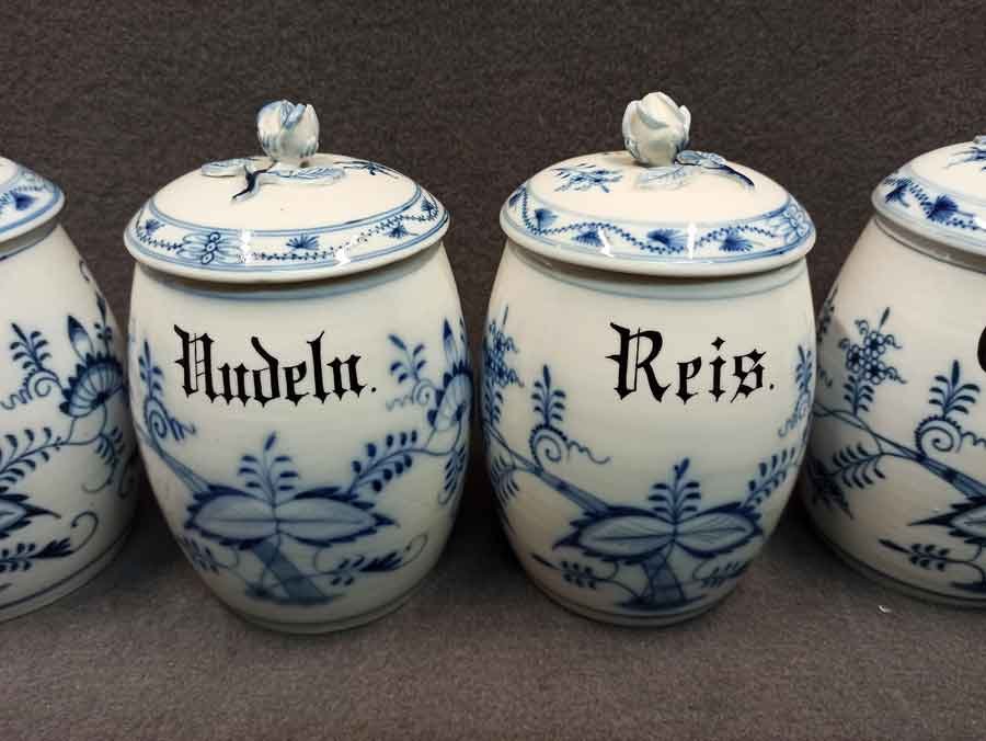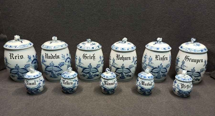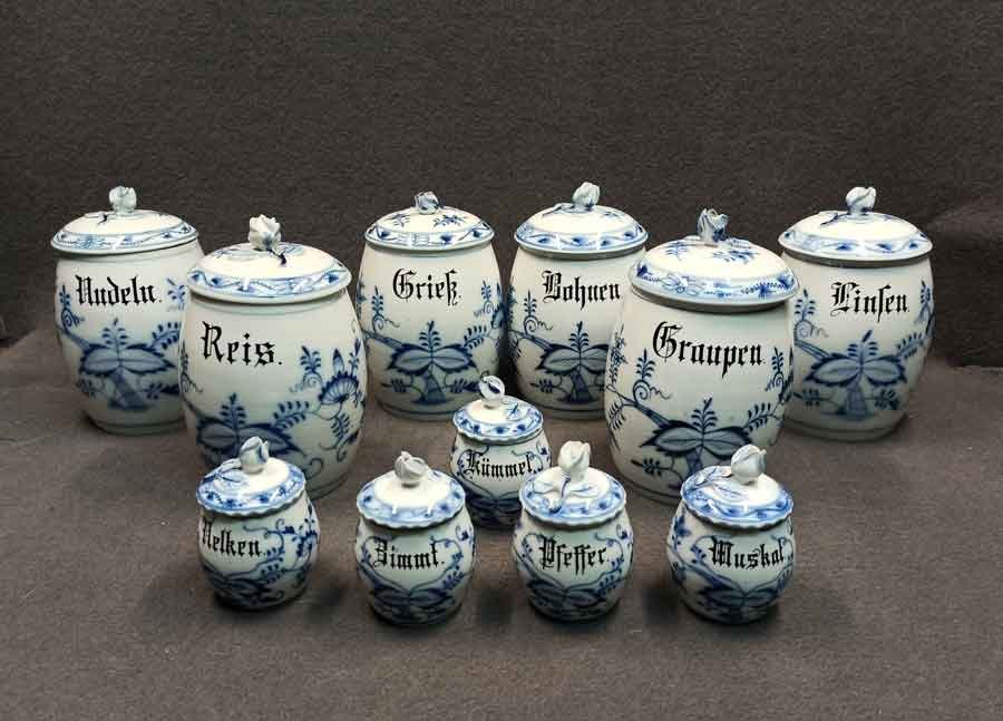 Zwiebelmuster, 11 Vorratsdosen der Porzellanmanufaktur Ernst Teichert aus Meißen