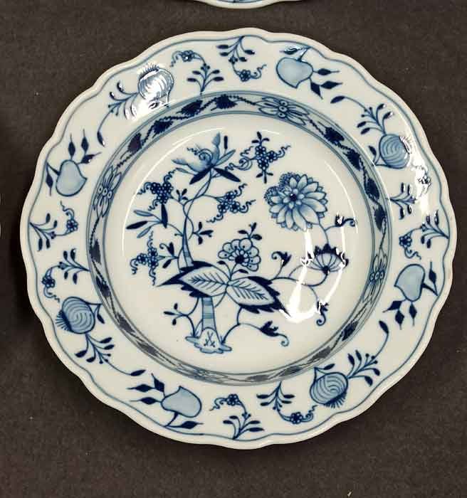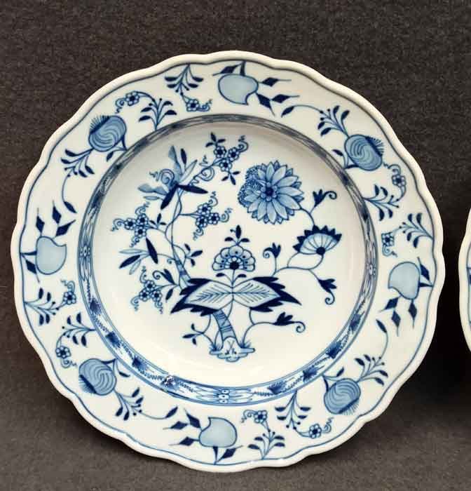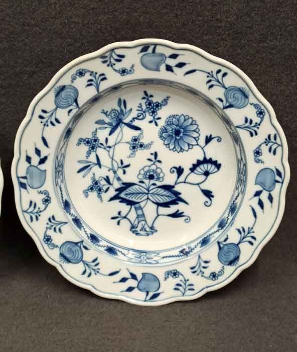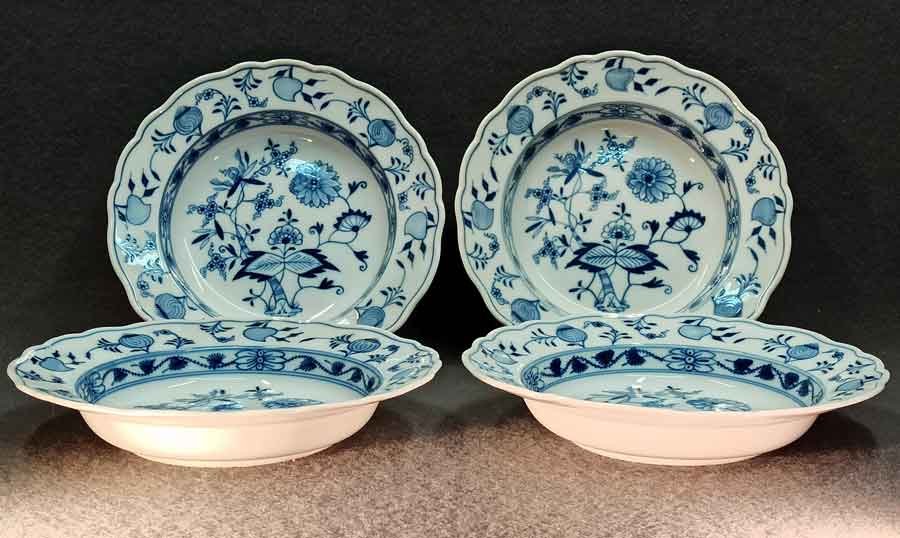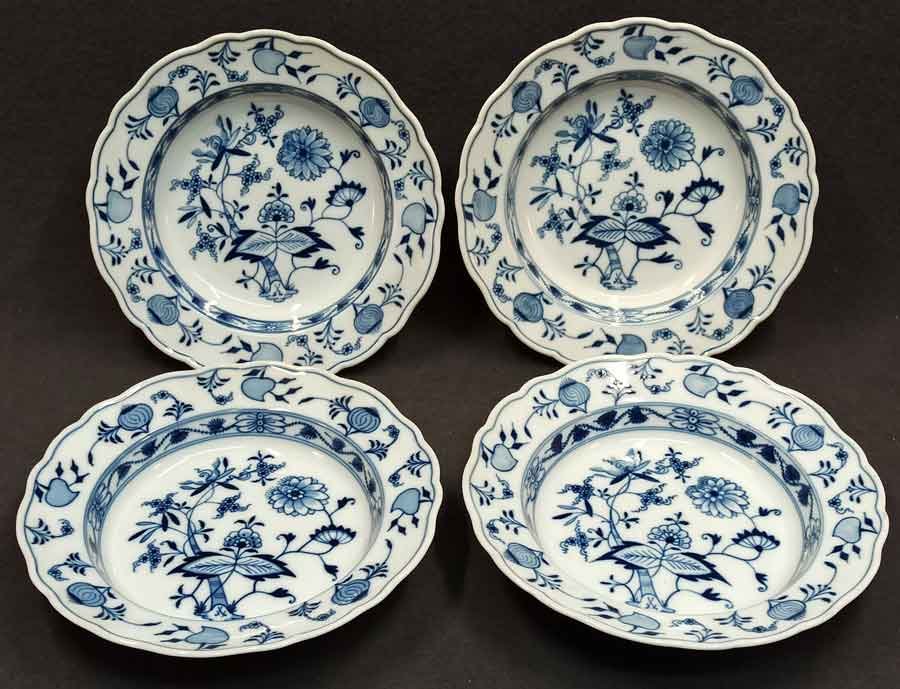 Meissen, 4x Teller, Zwiebelmuster. Tiefe Teller, Suppenteller D. ca 23,5 cm.