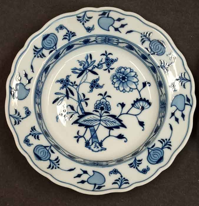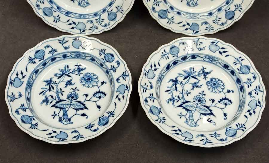 Meissen, 4x Zwiebelmuster Teller, tiefe Teller D. 23,5 cm, alt Knauf 1880-1900
