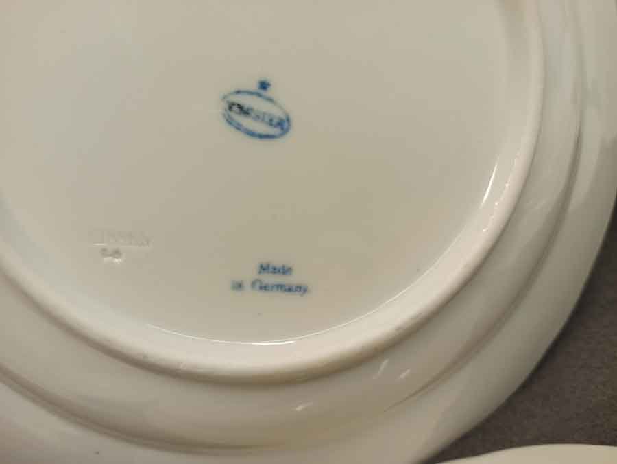 Gemarkt mit ovale Teichermarke mit Schriftzug "Meissen" in Blau, geprägter Schriftzug "Meissen" und verschieden Beizeichen.