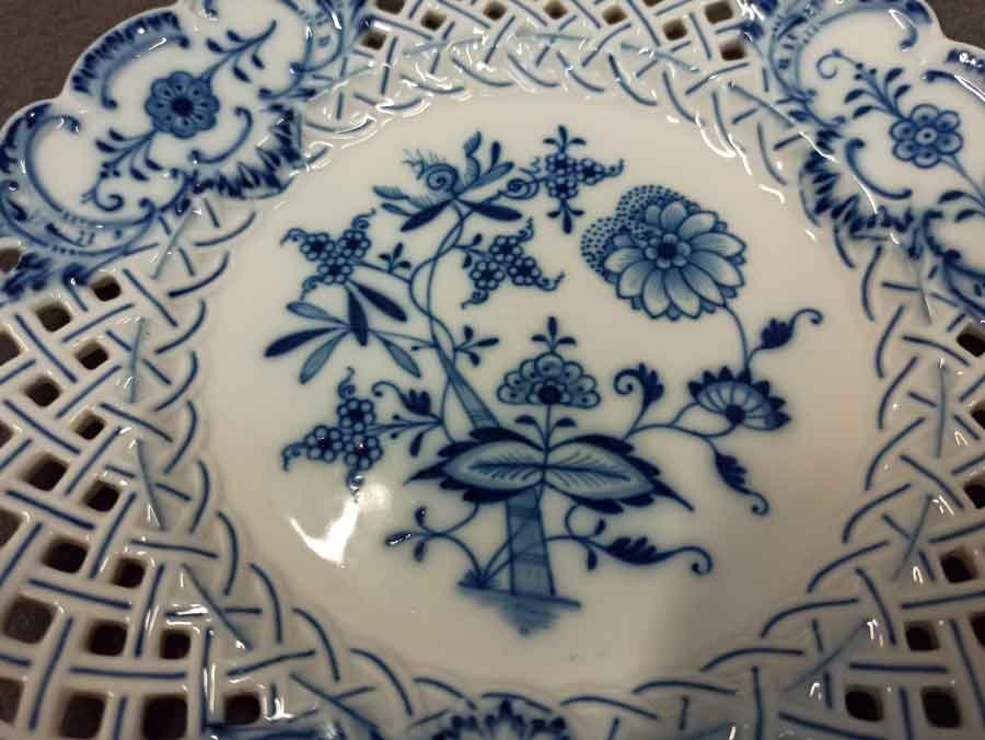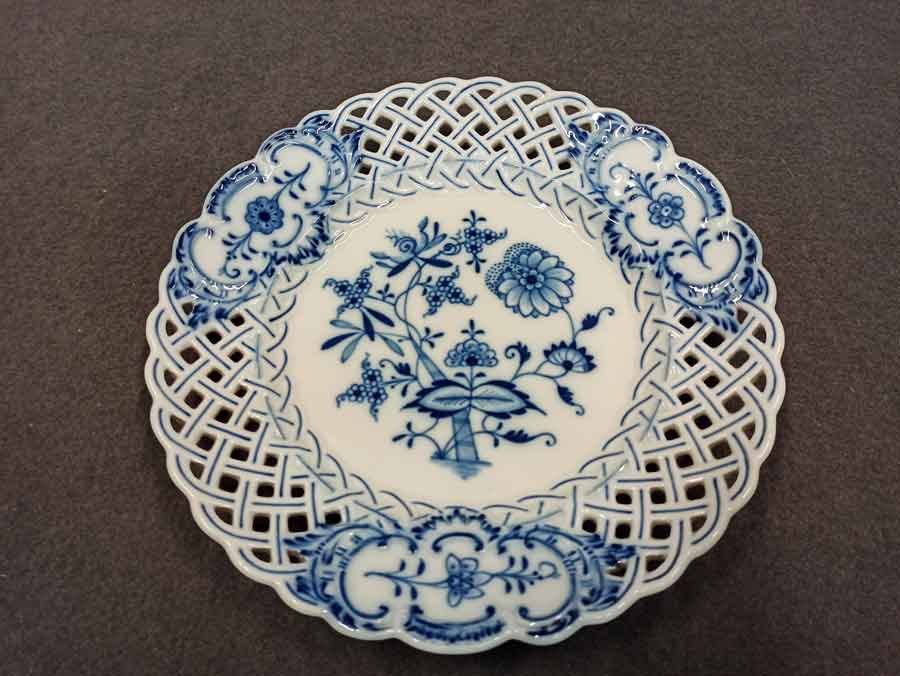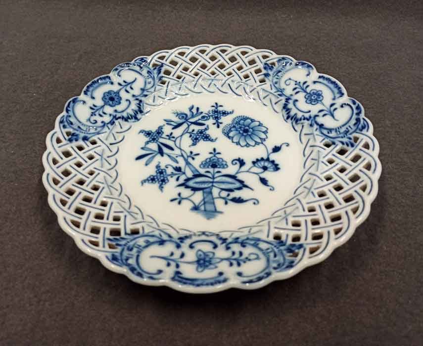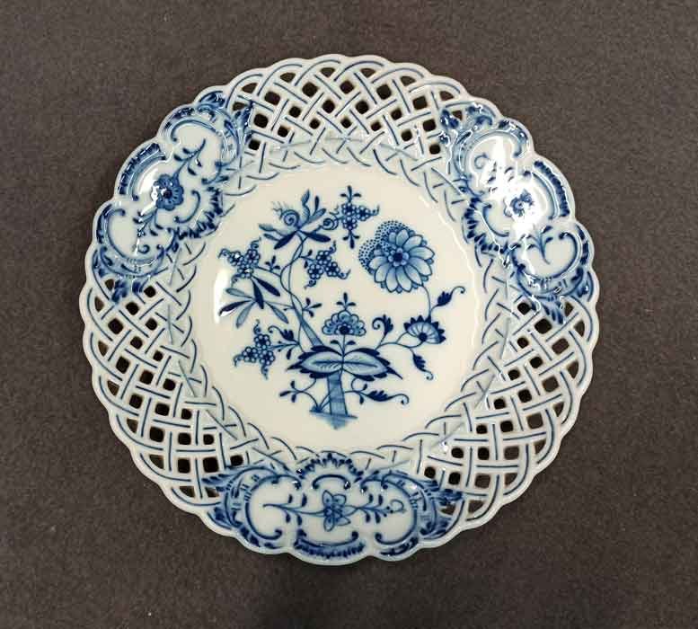 Teichert, Meissen. Zwiebelmuster Flechtrandteller, Teller mit Durchbruchrand.