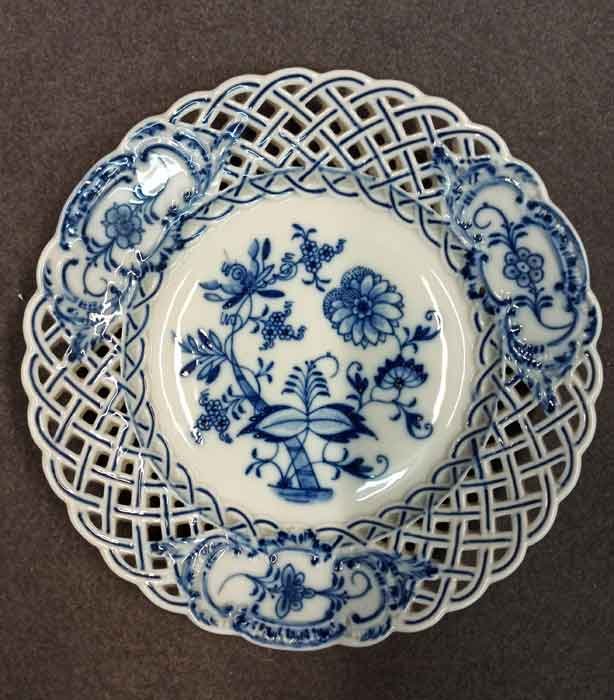 Teichert, Meissen, Zwiebelmuster; Flechtrandteller, Teller mit Durchbruchrand.