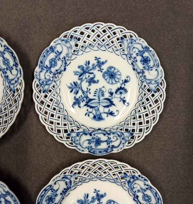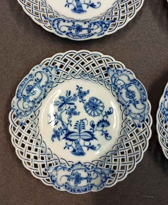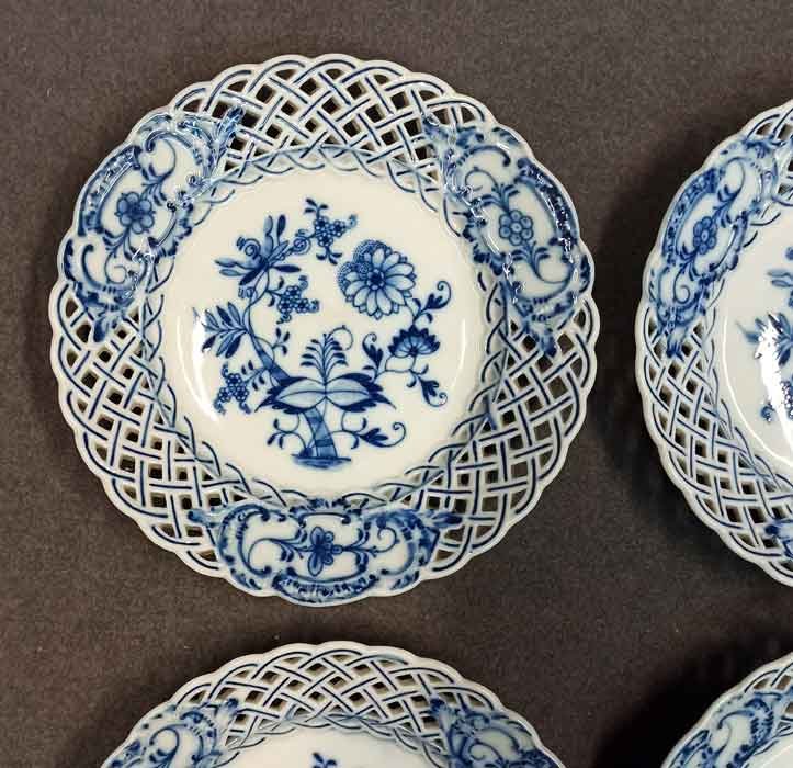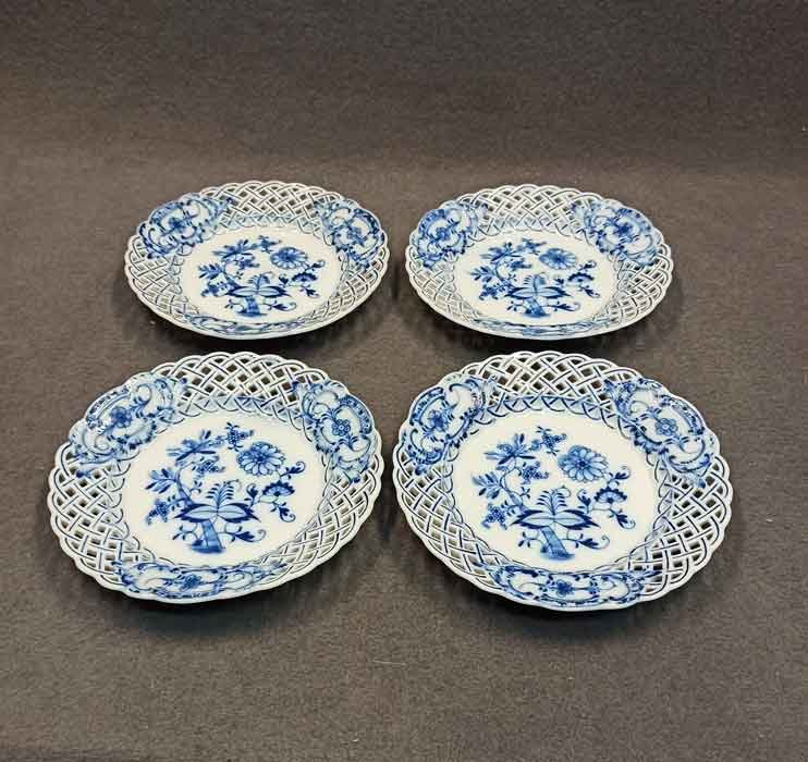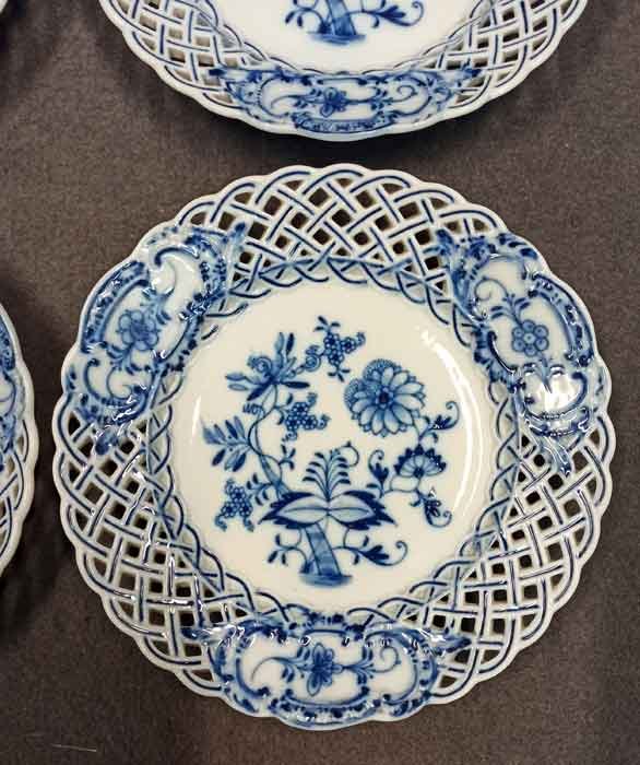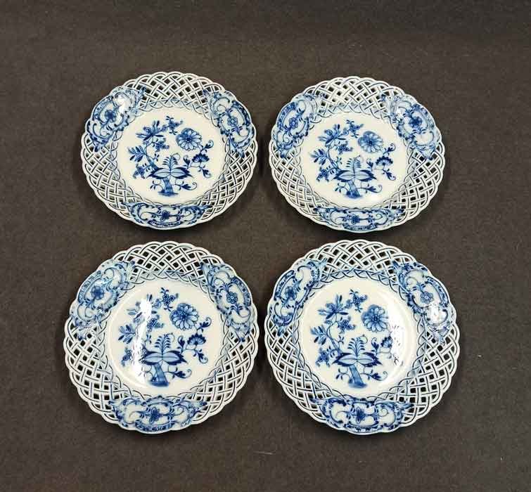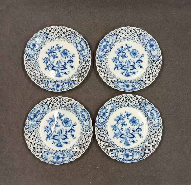 Teichert, Meissen,Zwiebelmuster; 4x Flechtrandteller, Teller mit Durchbruchrand.