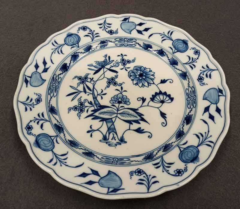 Meissen Zwiebelmuster. Großer, flacherTeller, D. 25 cm. Alt, Knaufzeit um 1900.
