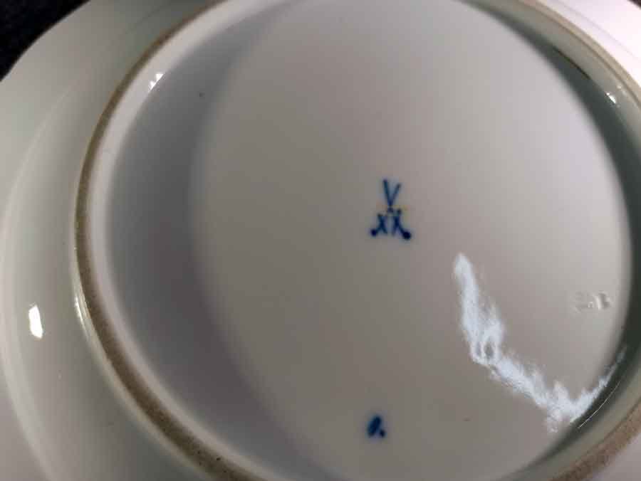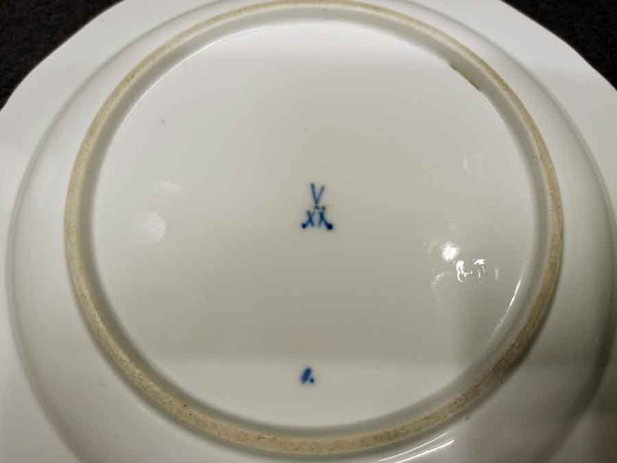 Blaue Schwertermarke der Manufaktur Meissen, Schwerter mit Knauf um 1900, 1 mal gestrichen.