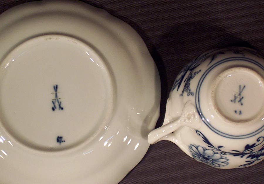Meissen kleine Mokkatasse. Knaufschwerter um 1880, 2 Schleifstriche.