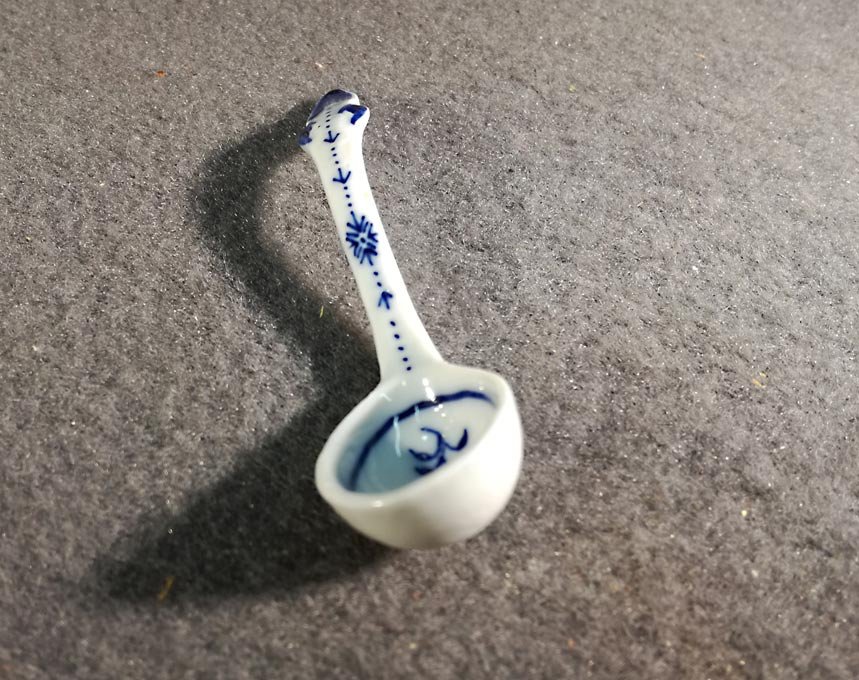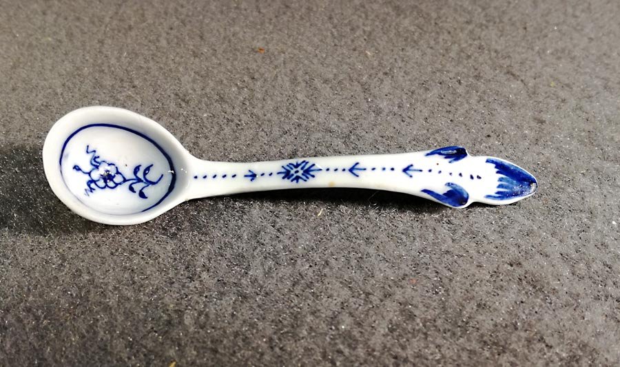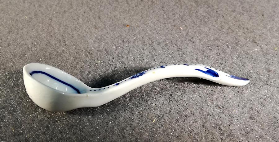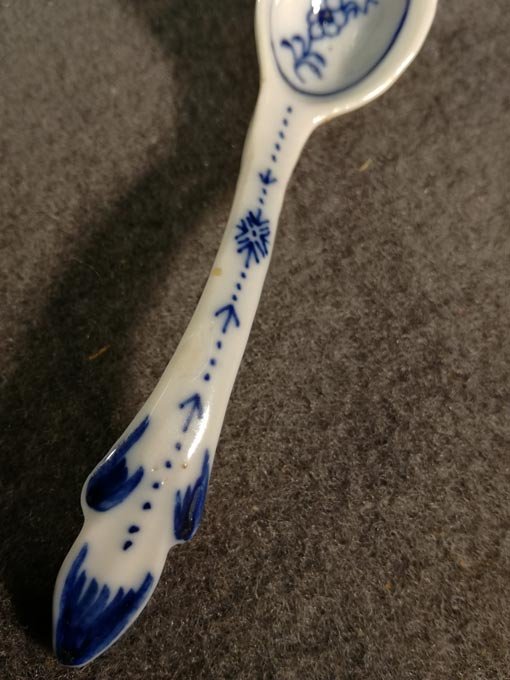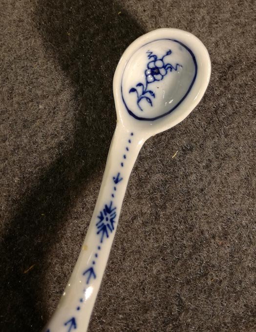 Gewürzlöffel, Kleiner Löffel um 1880, Blaudekor ähnl. Zwiebelmuster.