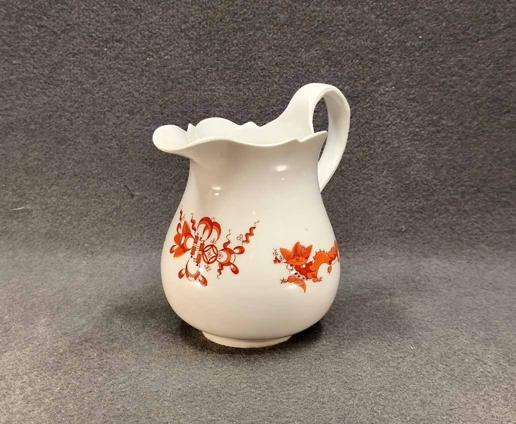 Meissen großer Krug, Milchkrug, H. 16 cm, Dekor Roter Drache. Guter Zustand, herstellungsbedingt zwei minimale Unregelmäßigkeiten am Rand. Schwertermarke, 4x gestrichen.