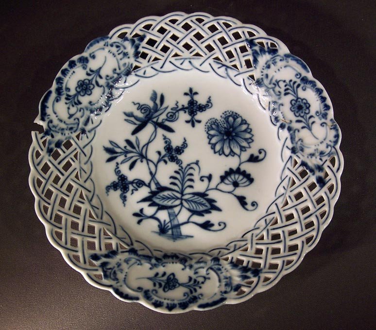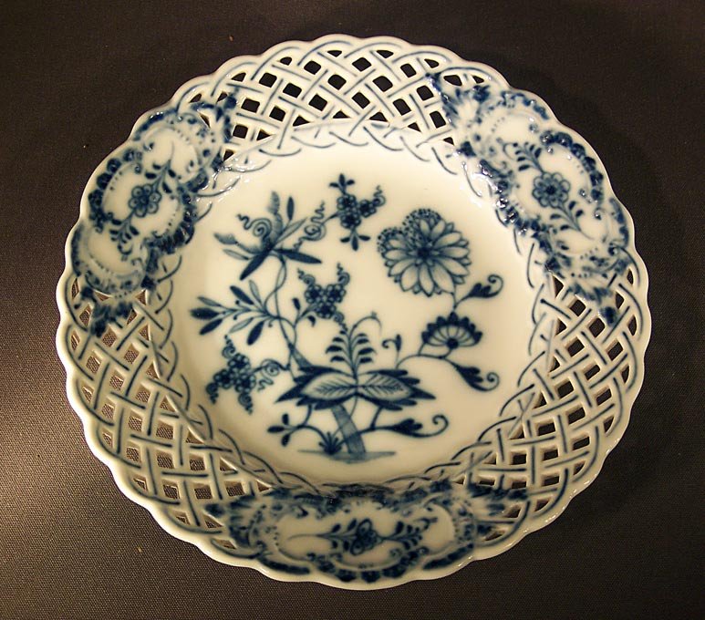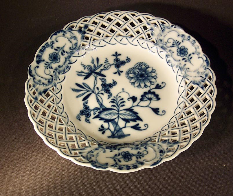 2+1 Teller Meissen um 1850-80, Dessertteller mit Flechtrand, Zwiebelmuster