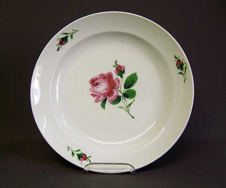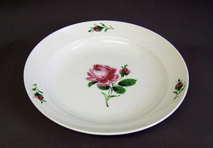 Große Schale oder Teller, Rote Rose. Manufaktur Meissen um 1820 - 1850. Durchmesser ca 30,7 cm.