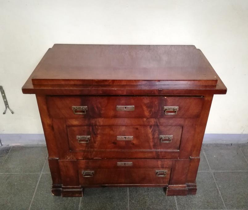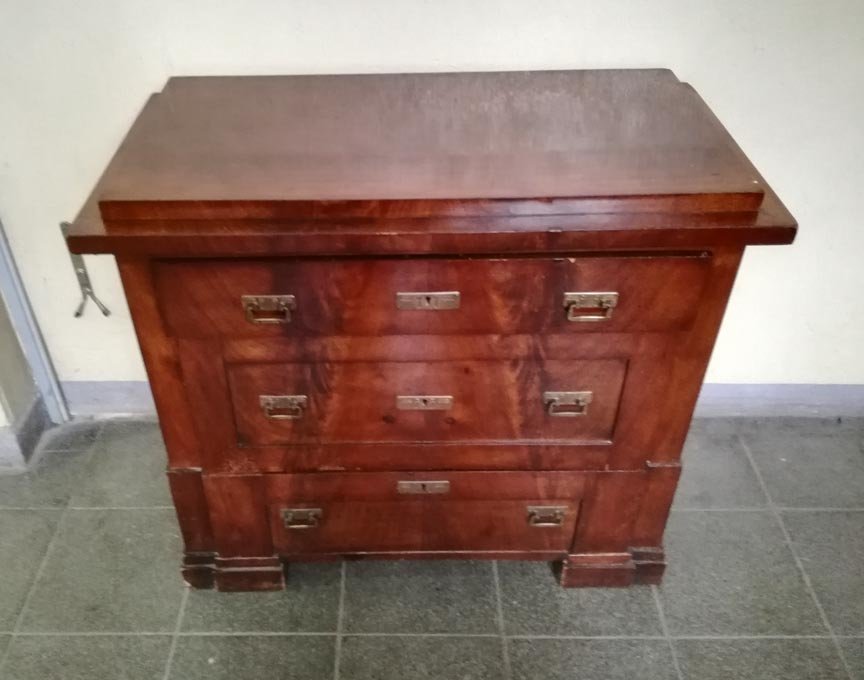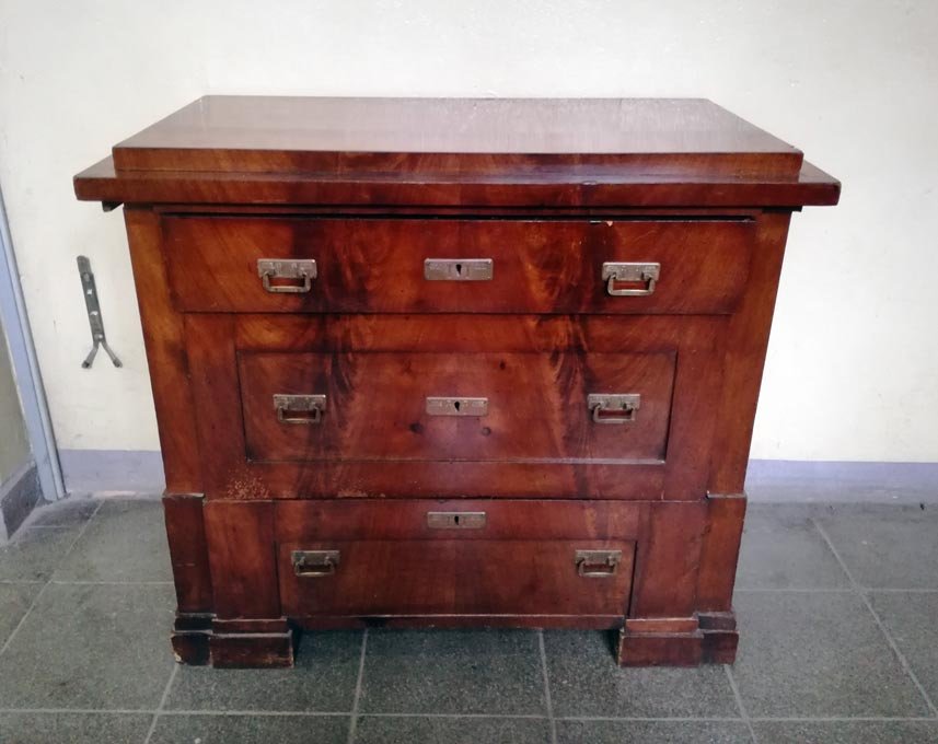 Restaurierungsbedürftig, sehr gute Substanz. H. 85, B. 97, T. 51 cm