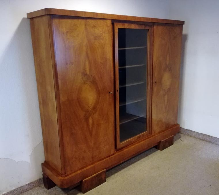 Bücherschrank, Glasschrank, Art Deco ca 1925 Nussbaum .