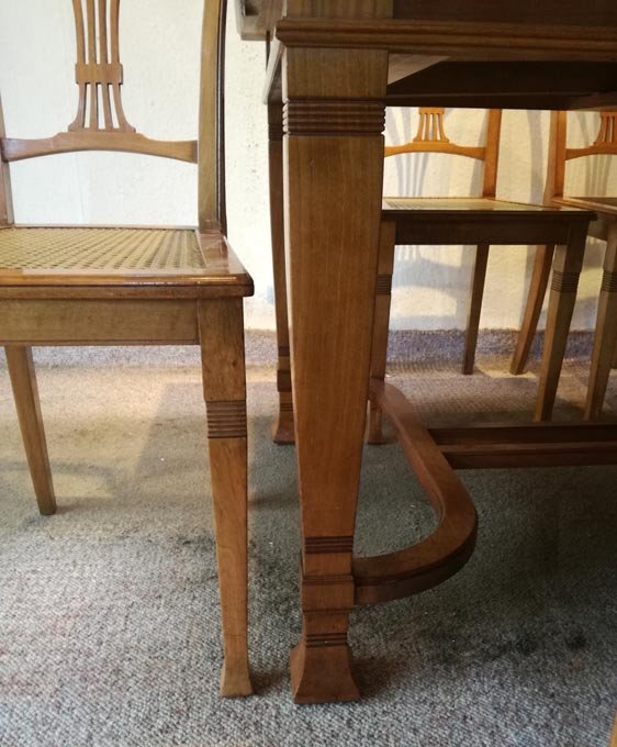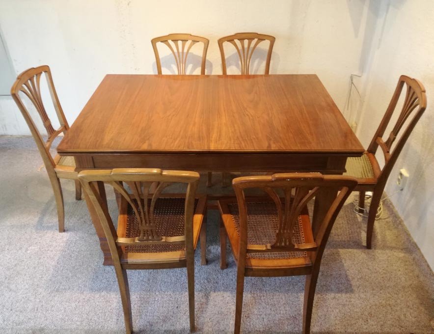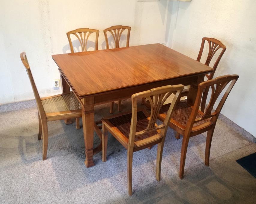 Sitzgruppe Jugendstil um 1910, Ausziehtisch und 6xStühle, Nussbaum