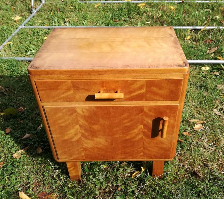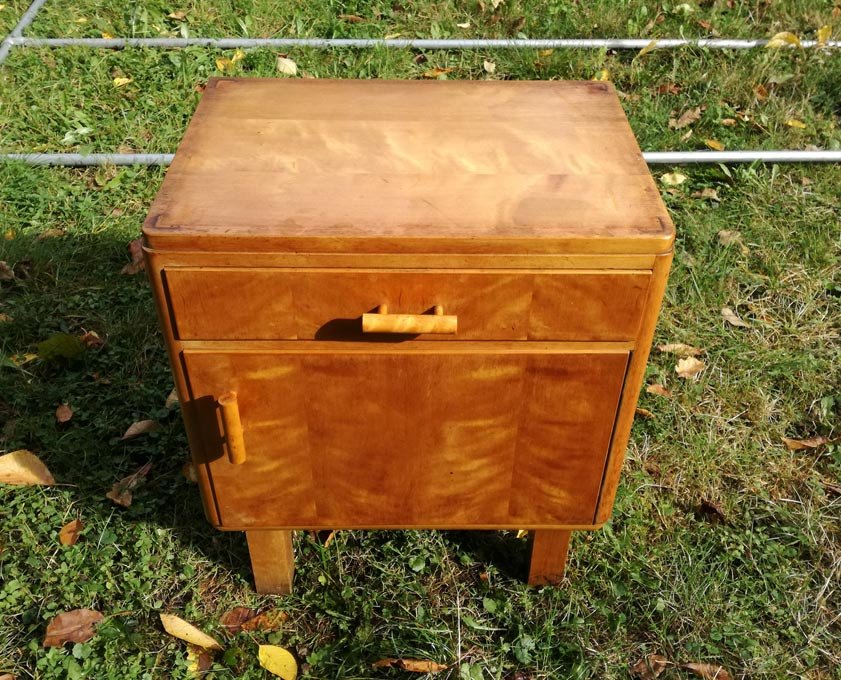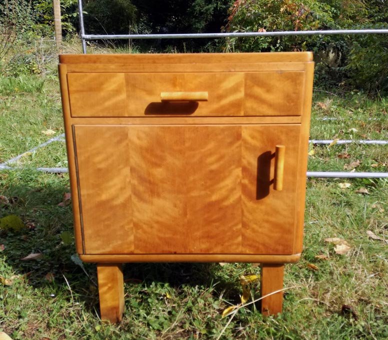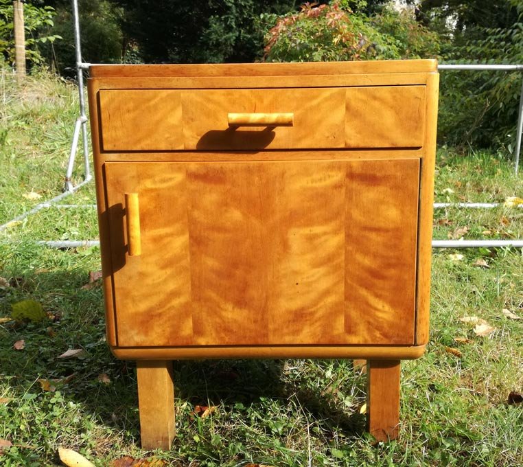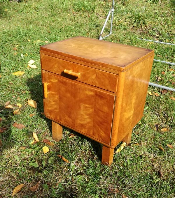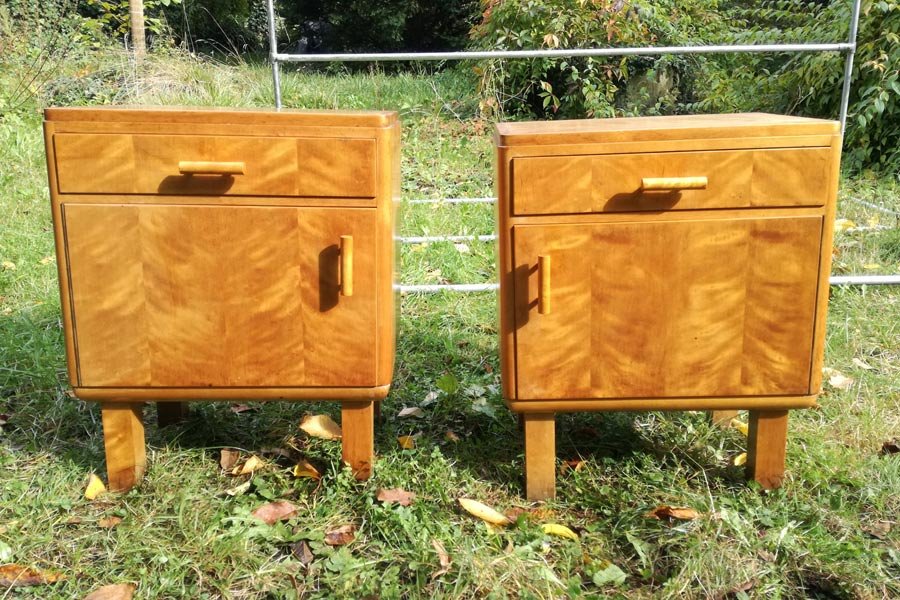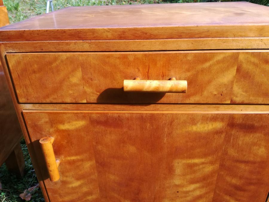 Schränkchen im Art Deco Stil um 1925, Birke. Links bzw, rechts offnend. Guter Zustand. Maße: H. 60cm , B. 47cm , T. 34 cm. Auch einzeln (je 35,- Euro) zu erwerben