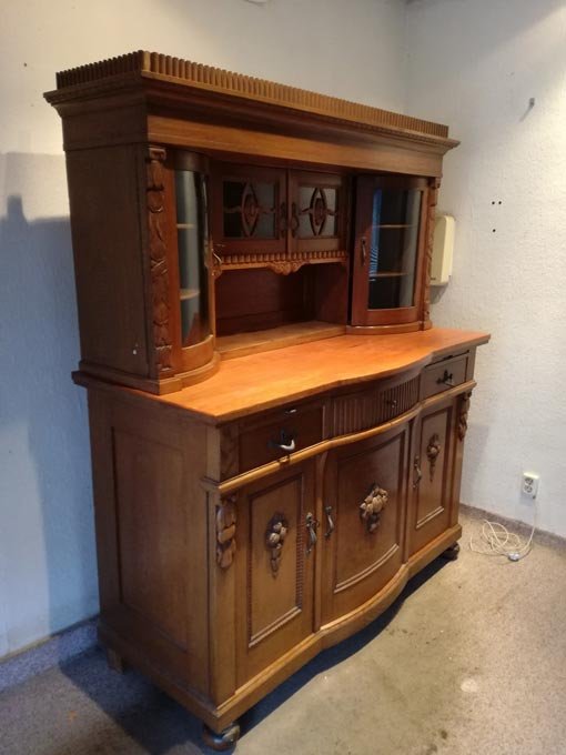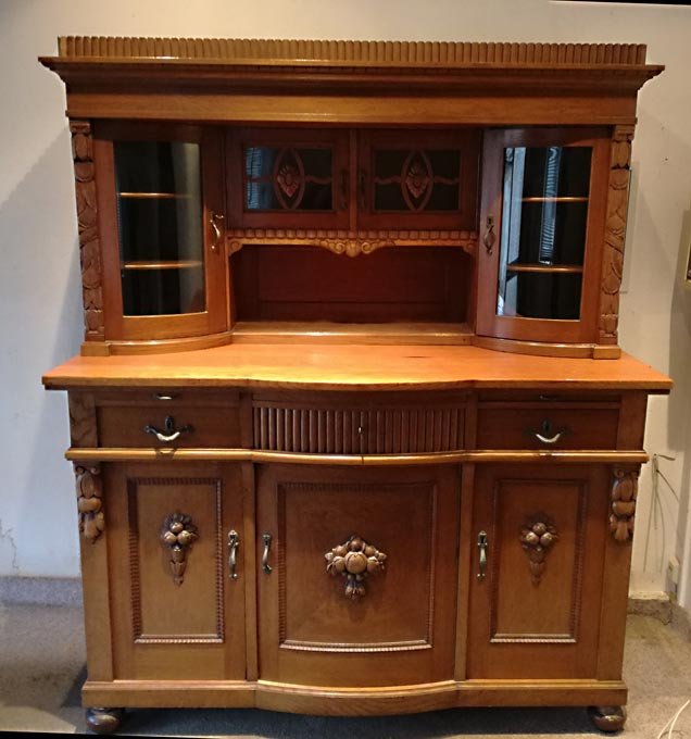 Sehr aufwändig gearbeitetes Buffet aus der Zeit um 1910. Sehr solide, mit Schnitzarbeiten, gewölbte Glastüren etc.