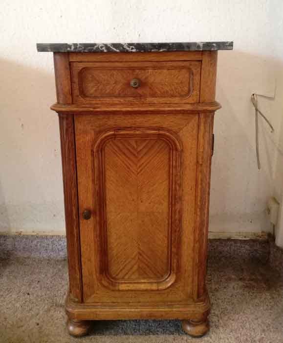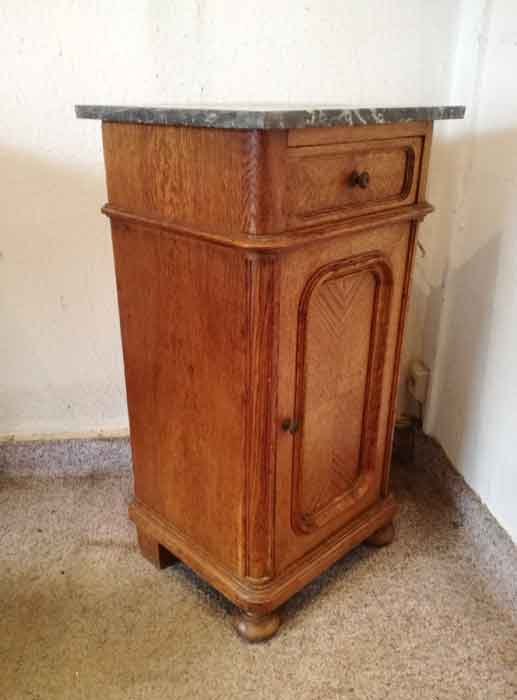 Kleiner Schrank, Nachtschrank um 1900. Eintürig mit Schubkasten, Marmorplatte. Schönes kleines Möbel, schönes Holz und gut erhalten. L. x B. 40 x 40 cm, H. 80 cm
