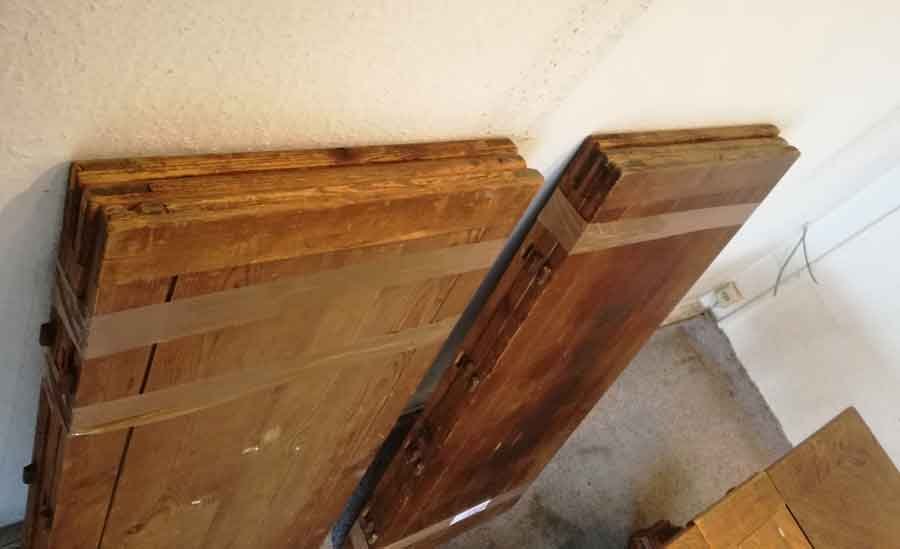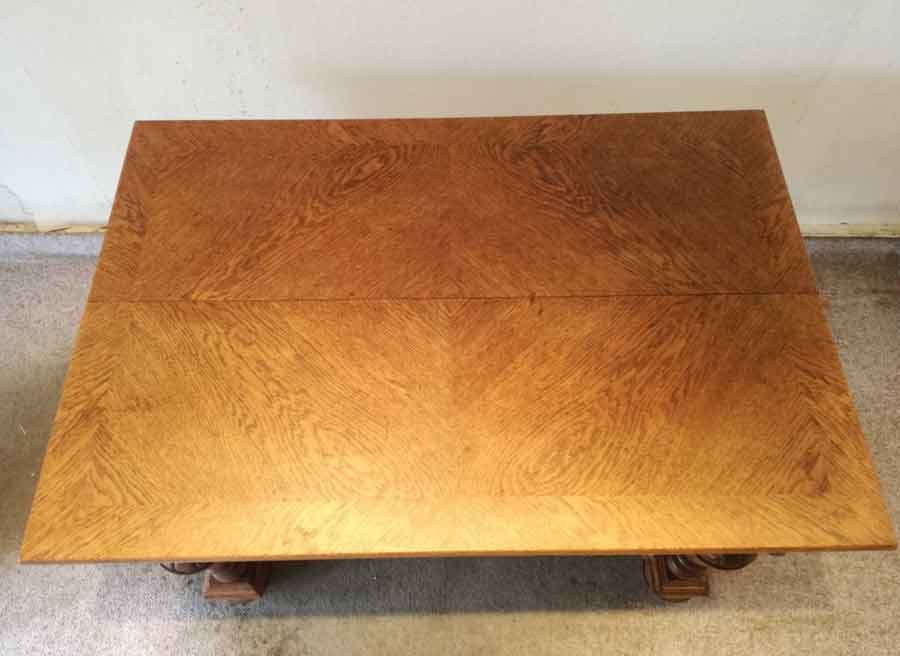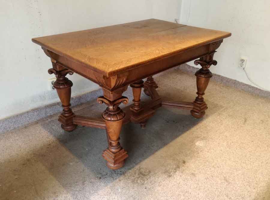 Reserviert! Gründerzeit Tisch, ausziehbar auf eine Gesamtlänge von ca 380 cm. Zeit um 1880, Eiche hell. Zeittypische geschnitzte Verzierugngen Ausziehtisch mit externen Einlegeplatten, 7 x Einlegeplatten. Tisch mittig geteilt unter der Platte mit mehreren Auszug-Schienen. Unrestaurierter, guter Zustand einige Fehlteile, diese teilweise vorhanden. L. x B. 115 x 78 cm, H.73 cm; 6x Einlegeplatten je 47 cm + 1x 23,5 cm. Der Tisch ist also in 23,5 cm Schritten ausziehbar bis zu einer Gesamtlänge von ca 380 cm